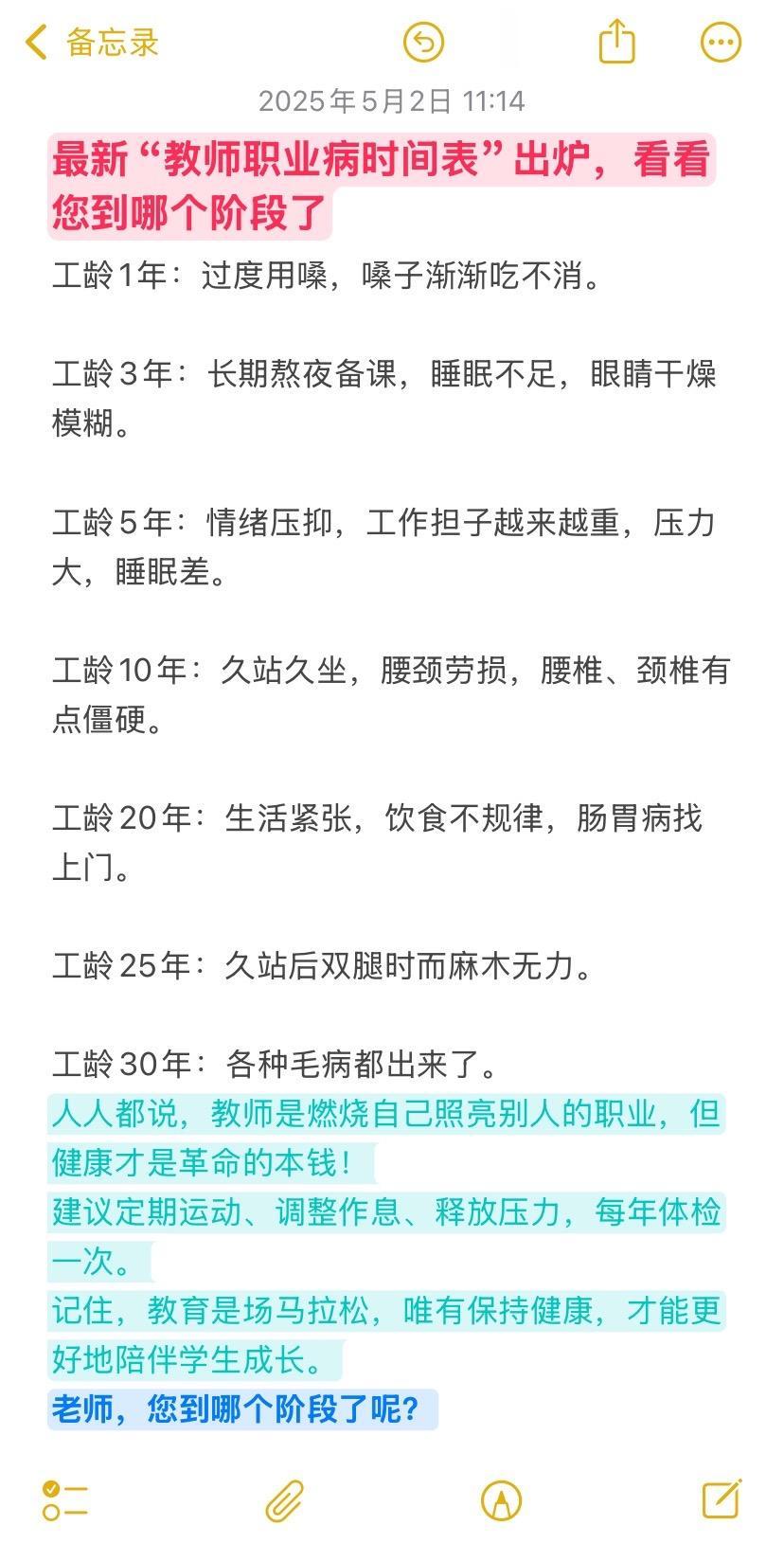 最新“教师职业病时间表”出炉。最新“教师职业病时间表”出炉,看看您到哪个阶段了