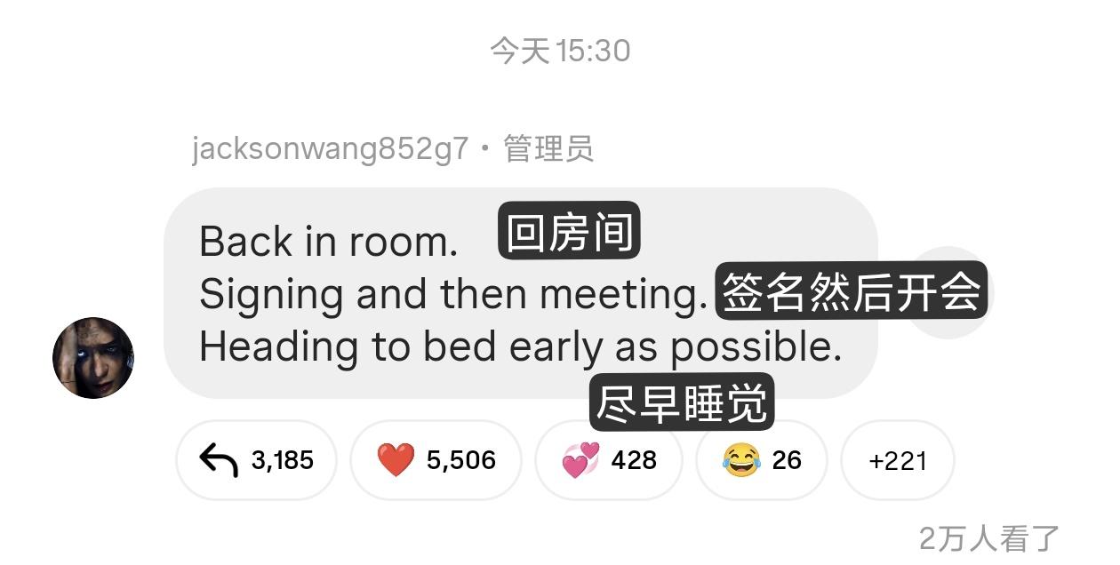 poor Jackson🥺只睡了两小时。HITC 出演时间 北京时间...