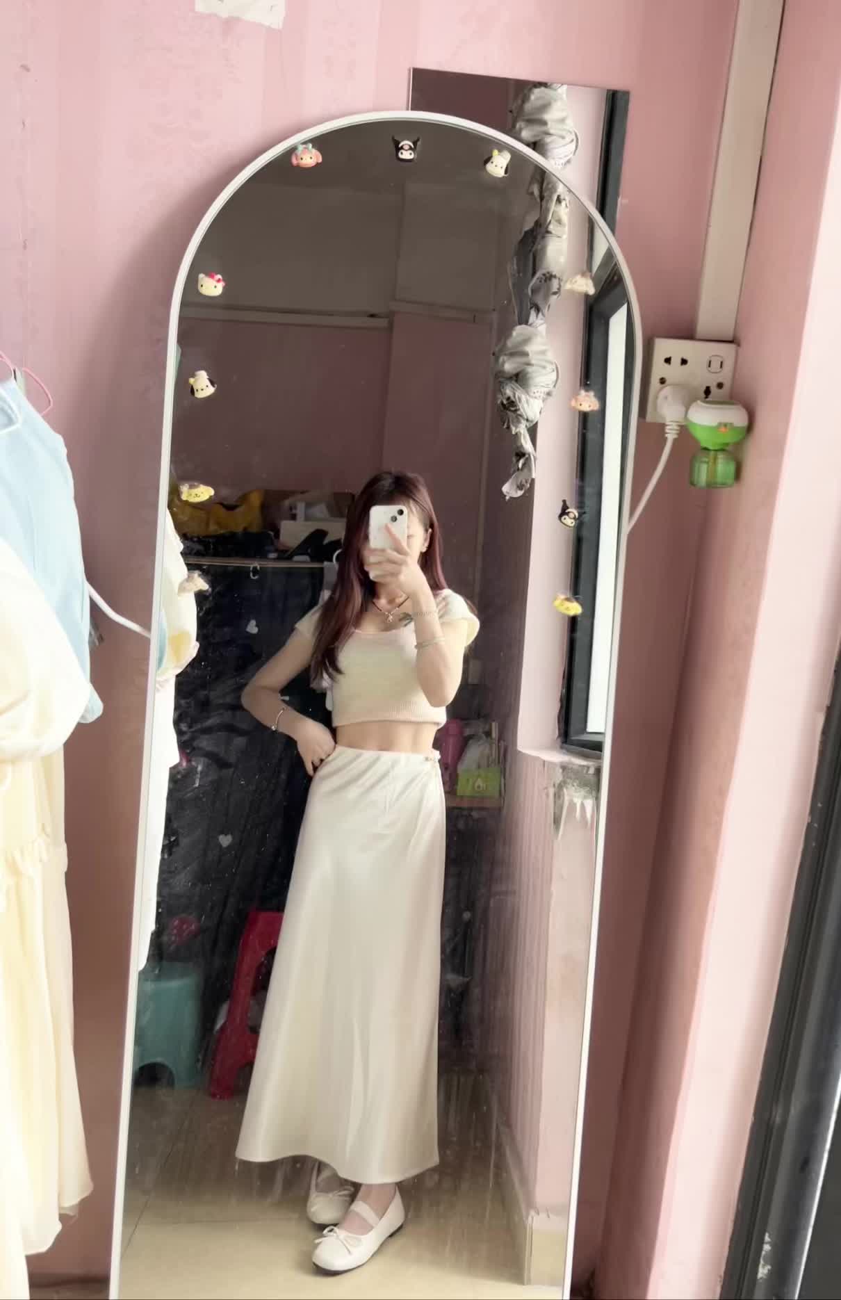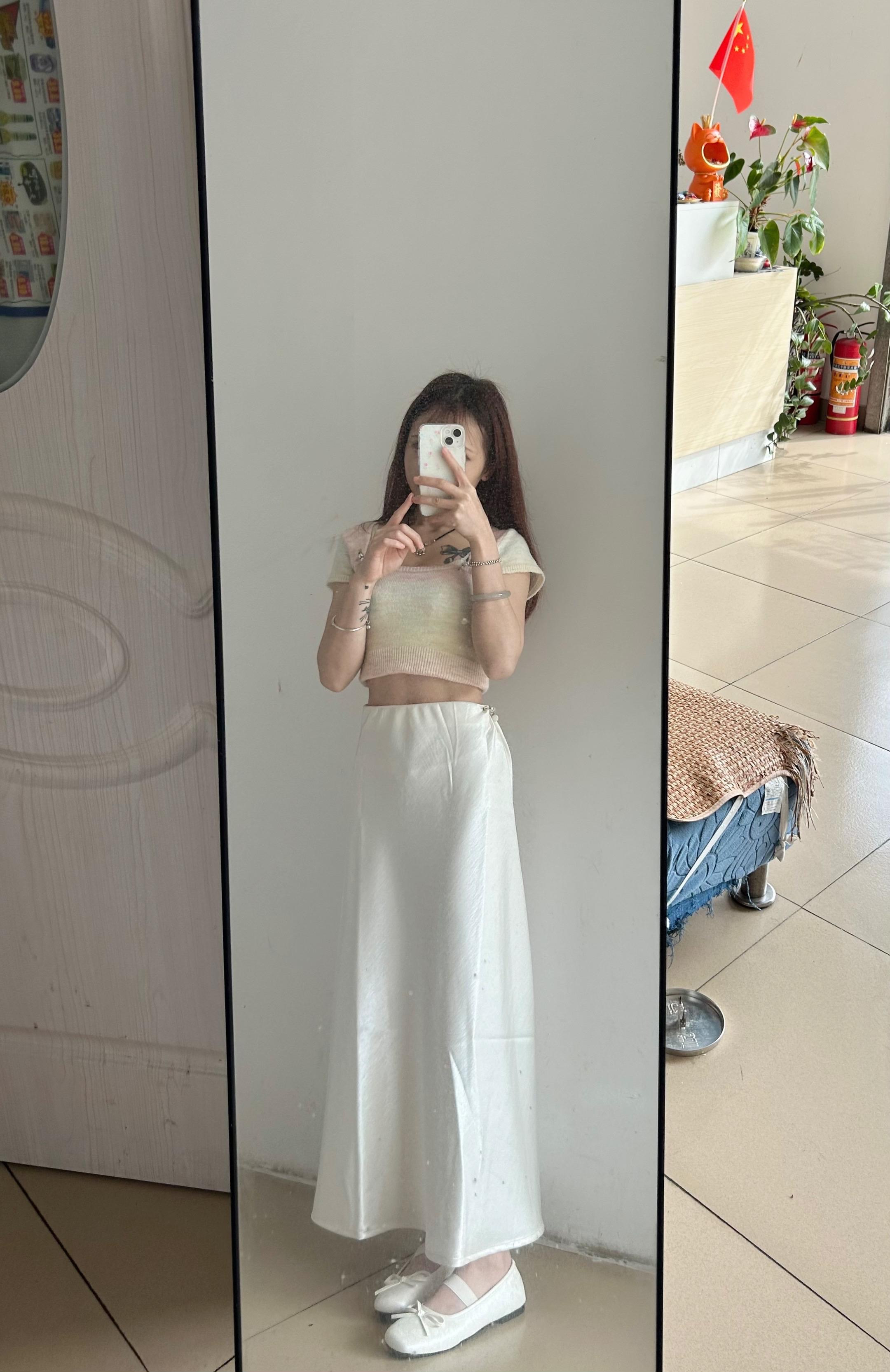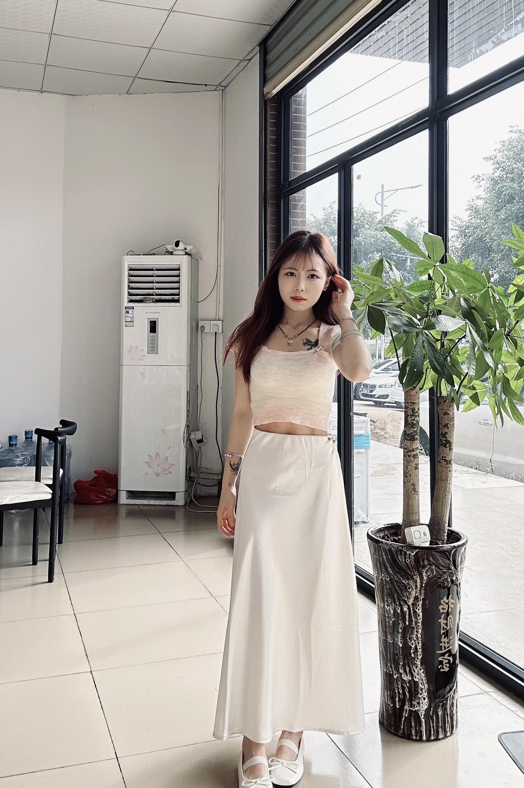 米白裙子一穿,会议室秒变T台。不靠loud颜色抢戏,靠面料说话。真丝垂得