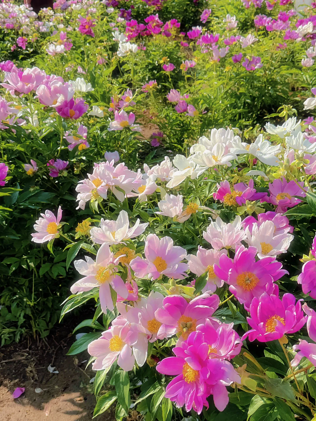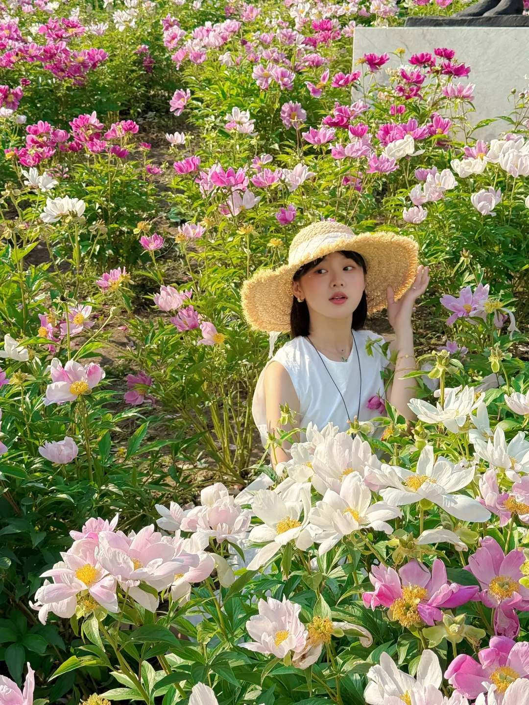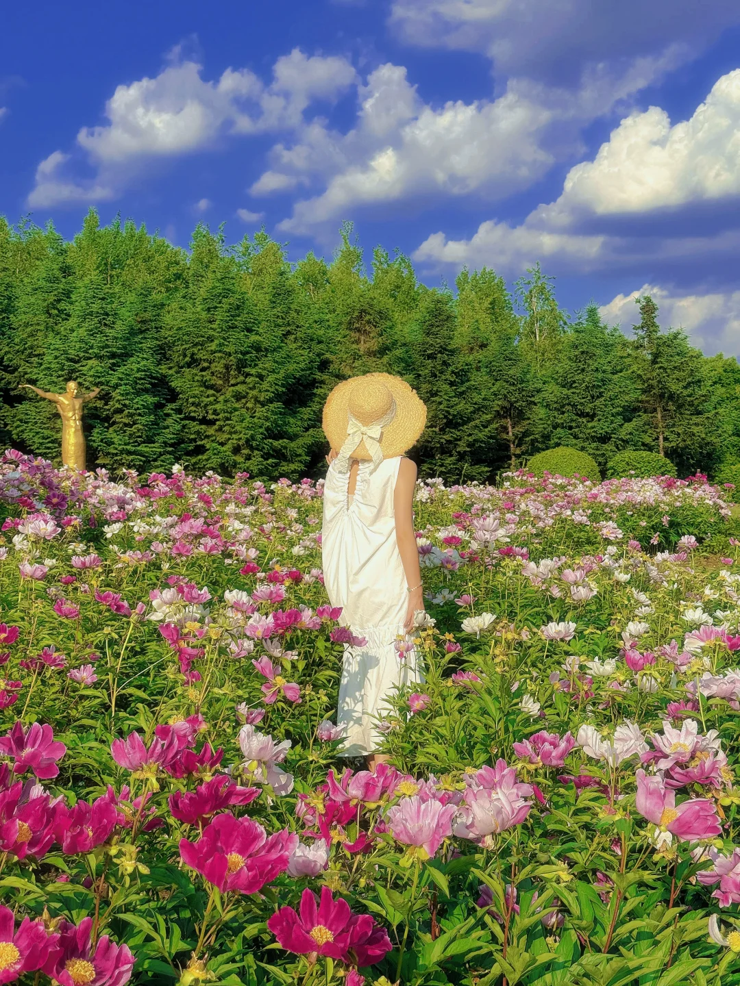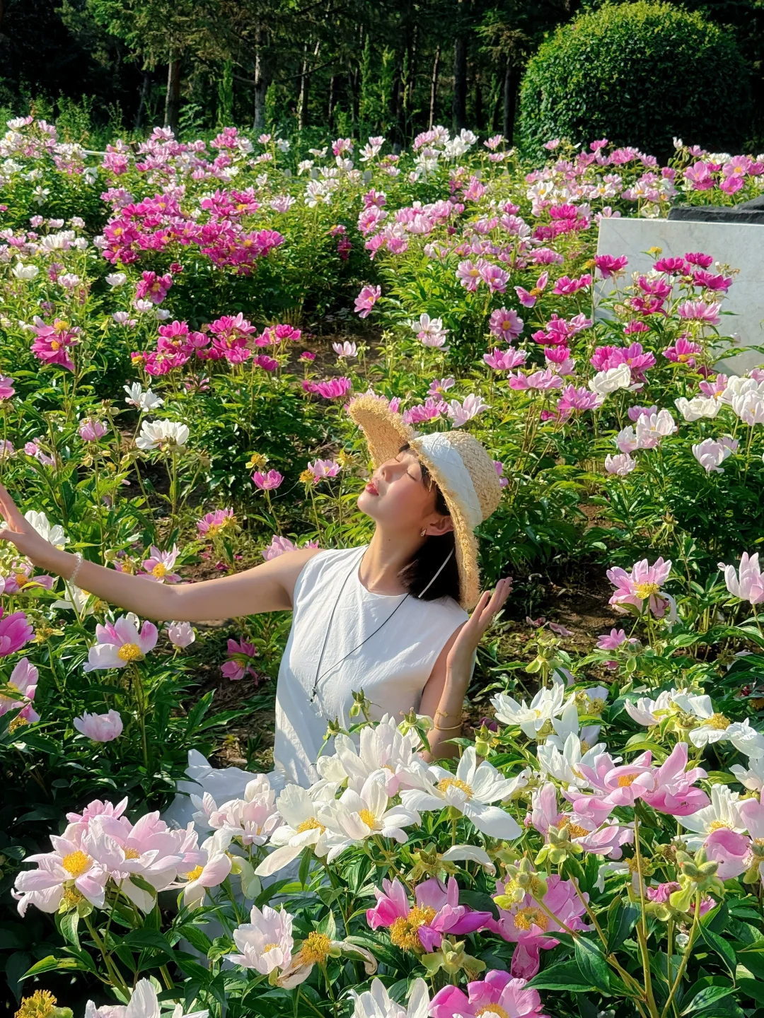 六月艳阳天下的芍药花缤纷色彩 衬的人很美