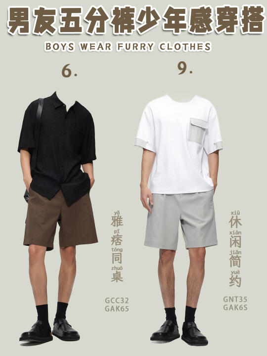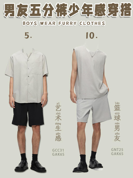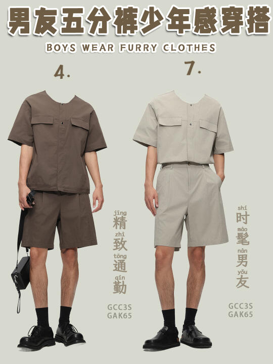 ▪️ 燕麦灰圆领衬衫+黑色五分休闲裤