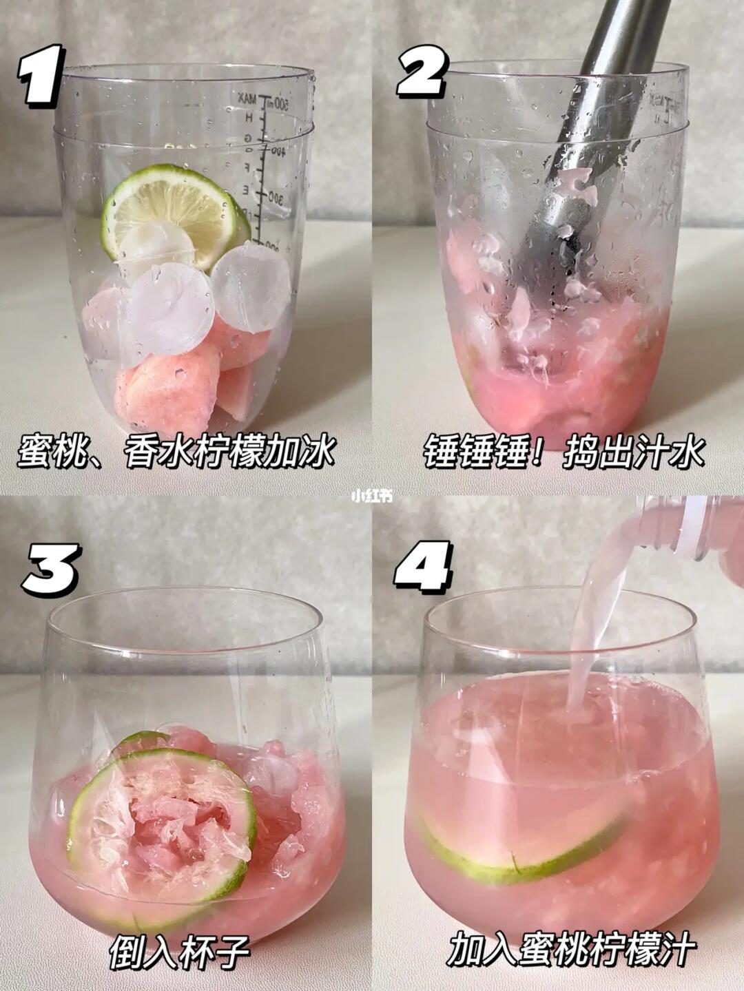 啊啊!!姐妹们这是仙女喝的蜜桃柠檬茶吧!! 粉粉的颜值担当!!而且巨巨巨好喝!! 酸酸甜甜的,清爽又解腻!! 🍋食材:蜜桃、香水柠檬、蜜桃柠檬汁 🌈做法:蜜桃去皮切块,香水柠檬切片 放杯子里一起捣出汁,再倒入蜜桃柠檬汁即可~ 再加点冰块🧊,冰冰爽爽的!真的好喝到起飞! 姐妹们一定要试一试!好看又好喝!!