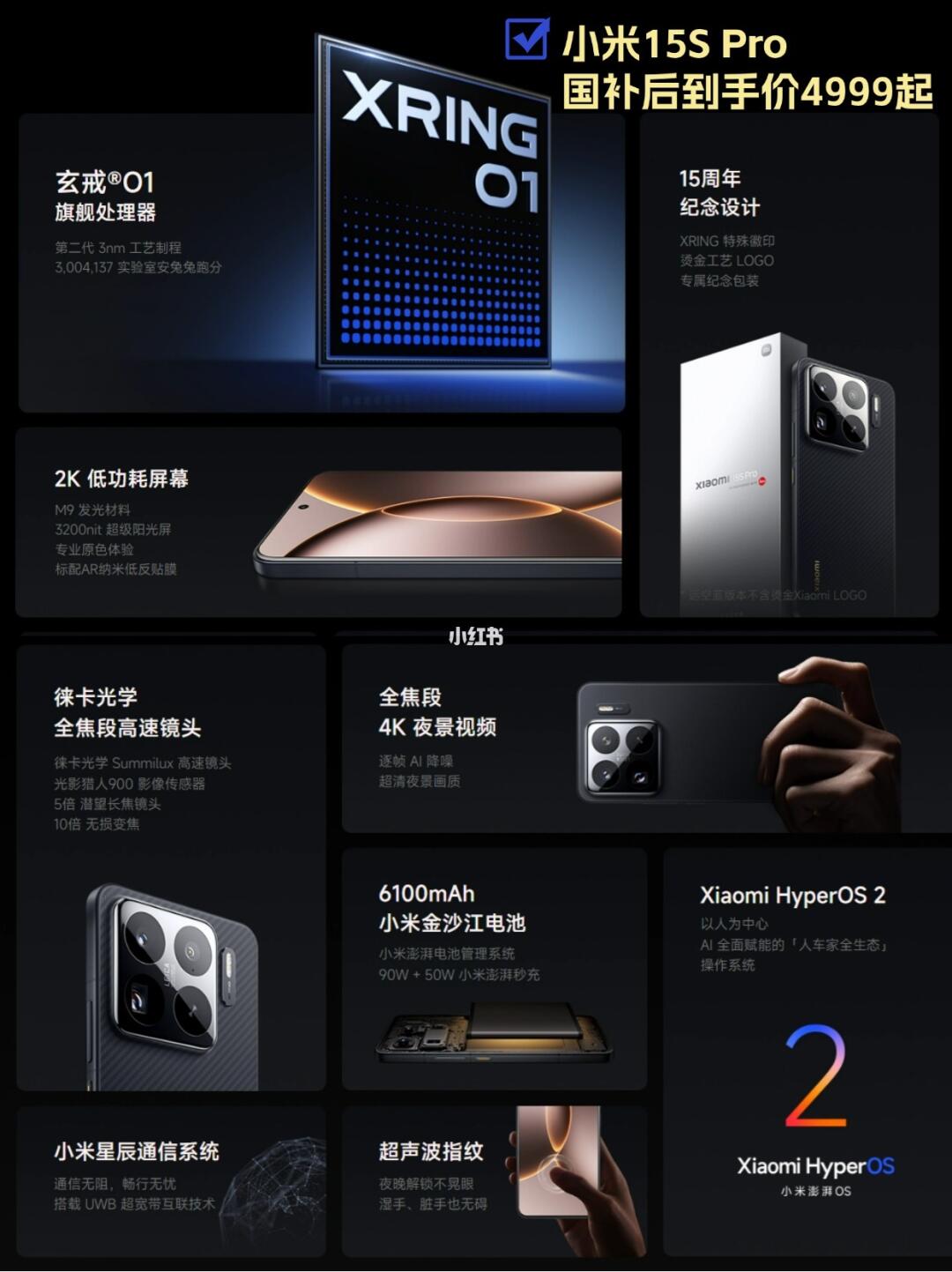 如果看重影像能力和外围配置,小米15S Pro会更符合需求,国补后到手价4999起。