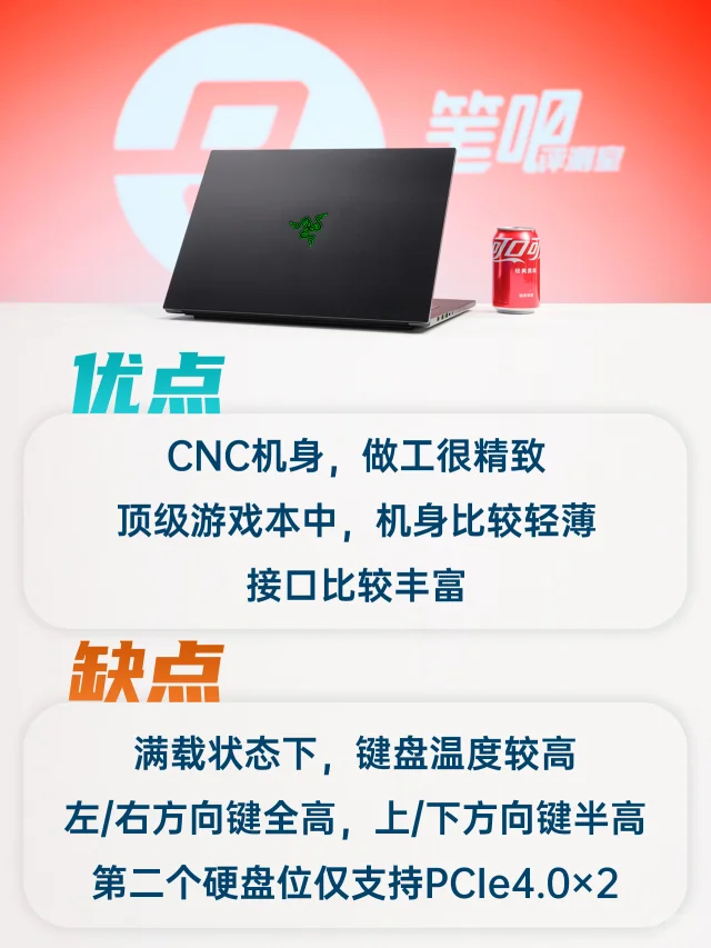 RTX 50显卡游戏本们终于陆续发布了,它们的性能释放都很强,周边规格都很高,但其中最令我惊喜的,反而是一台“剑走偏锋”“主打轻薄”的游戏本——雷蛇灵刃16 2025。[斜眼R] 这台电脑的机身最厚处仅18.2mm(不含脚垫),四周厚度仅有14.9~15mm,也就是说,它的厚度与苹果MacBook Pro(15.5mm)是同一水平的,也难怪被玩家戏称为“暗黑MacBook”了。[偷笑R] 那么搭载RTX 5090的雷蛇 灵刃16表现如何呢? 它的优缺点如下: 优点👍 ✅CNC机身,做工很精致 ✅顶级游戏本中,机身比较轻薄 ✅接口比较丰富 缺点👎 ❌满载状态下,键盘温度较高 ❌左/右方向键全高,上/下方向键半高 ❌第二个硬盘位仅支持PCIe4.0×2 雷蛇 灵刃16 最大的特点是“轻薄化设计”,由上一代22~23mm锐减至14.9~18.2mm。不仅在游戏本中超薄,甚至还逼近苹果MacBook Pro。雷蛇 灵刃16 2025有AI 9 365、RTX 5080和AI 9 HX 370、RTX 5090两个主要配置,二者的起售价分别是2️⃣4️⃣9️⃣9️⃣9️⃣和3️⃣1️⃣9️⃣9️⃣9️⃣,国补后到手价2️⃣2️⃣9️⃣9️⃣9️⃣和2️⃣9️⃣9️⃣9️⃣9️⃣。 作为游戏本中的精致、顶级、发烧代名词,雷蛇灵刃系列真的年年都能给我们惊喜[点赞R] 从之前的14寸独显性能本,到前年的4K高亮度广色域高刷屏,再到今年14.9~18.2mm塞入RTX 5090的薄型设计,不断刷新着我对于游戏本在某一领域的认知。[赞R] 今年雷蛇 灵刃16 2025采用AMD Strix Point处理器和顶级独显的组合,显然表达了其要进一步强化「游戏本也要兼顾便携性」理念,再配合上它机身大部分CNC工艺,这台机器无论是看着、摸着还是用着,都是顶尖的存在。[大笑R] 在我看来,游戏本性能释放彪悍固然很爽,但机身太重也会失去笔记本电脑“移动便携”的本质,雷蛇坚持探索轻薄高性能笔电,值得鼓励。