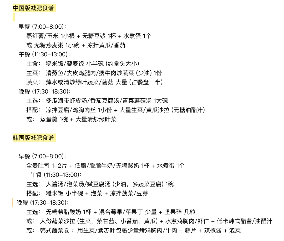 不管是谁!!想要变漂亮,流程都是一样的!! 减肥➕护肤➕穿搭 所以其实不管人在不在小韩,只要掌握这些规律,都会逆袭变漂亮~狠狠省下旅居经费拿来买化妆品护肤品不香吗! 减肥: 1.清淡饮食 🇰🇷女之所以皮肤好,饮食习惯很重要。 🇰🇷早餐几乎只有面包,牛奶之类,最多加一个饭团。国内面条粉丝包子虽然美味,但是是实打实的脏碳水! 中餐非聚会的情况下,大家一般会吃汤饭,也很清淡~概念等同于家常菜!所以说大家一定要少点外卖🥹养成好的饮食习惯才能瘦得不痛苦! 晚餐:认识的身材管理严格的🇰🇷女姐姐们,几乎晚上都是吃酸奶或者沙拉,而且过了下午6:30之后就不会再进食了! 我的韩国/国内食谱都放在后面了,大家可以照抄! 2.健身 🇰🇷女真的太自律了,我甚至见过周末在健身房泡一整天的姐姐🥹 没有上镜需求的话,其实保证一周3练就很好了!!减肥的话还是做爬坡/慢跑之类的有氧~记得做好拉伸! 护肤: 1.棉片湿敷 很真实的韩女常用/中女不怎么用的护肤手法~ 不管是化妆前还是晚上睡觉基础护肤,都可以用棉片湿敷5min左右,上妆真的不卡粉!第二天起床皮肤也是亮白的。 2. “双层面膜法”进行分区护理或加强渗透 分区护理版: 针对T区(油、毛孔)和U区(干、敏感)的不同需求。例如,T区使用清洁泥膜或控油啫喱面膜,U区(脸颊)同时使用保湿补水面膜或舒缓面膜。 加强渗透版(三明治面膜): 先薄涂一层精华(如补水、美白、抗老精华),然后敷上片状面膜。利用面膜的封闭性,强迫精华更深入地渗透进皮肤。 穿搭: 1. “内紧外松”法则: 里面穿修身款 (T恤、针织衫、吊带), 外面套宽松外套 (西装、衬衫、开衫、大衣) 2. “柔色+小亮”配色: 全身主色调选柔和色 (米白、燕麦、灰粉、浅蓝、卡其), 温柔高级不无聊,有视觉焦点。 核心精髓:版型要对比,颜色要柔和有重点!