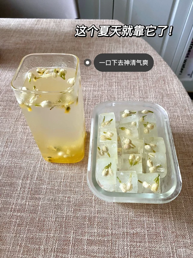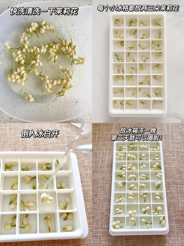 请大数据把我推给不爱喝水的姐妹!! 这一杯也泰清甜了!喝完连心情都好好~ 🌟茉莉花清洗一下,加凉白开放冰格冻上 第二天拿出来泡水喝,加一块上次我教大家做的百香果柠檬,真的好好喝!清香甘甜,闻着都香香的~ (或者直接泡水都很清甜)~ 不爱喝水的姐妹快试试,做一次可以喝一星期!!