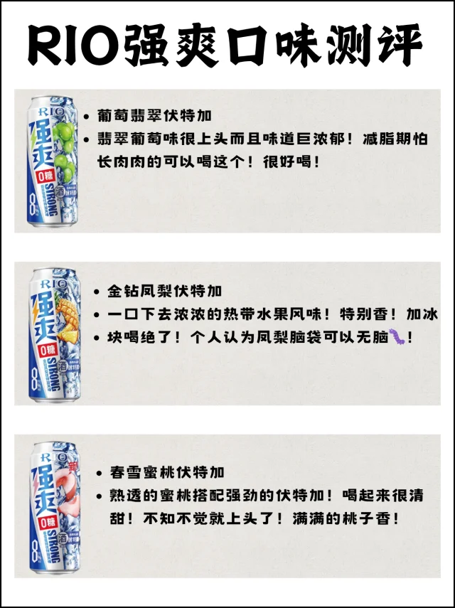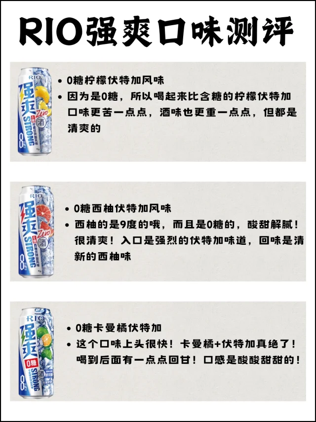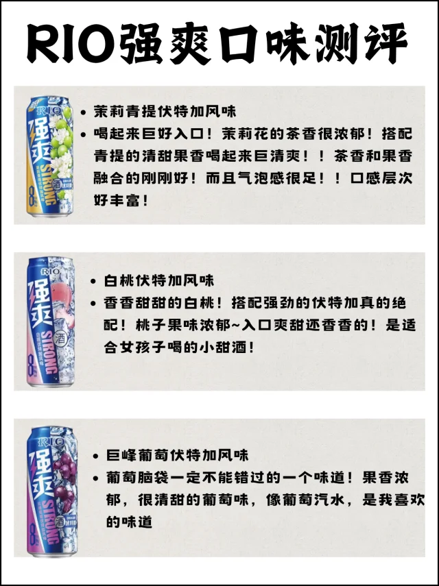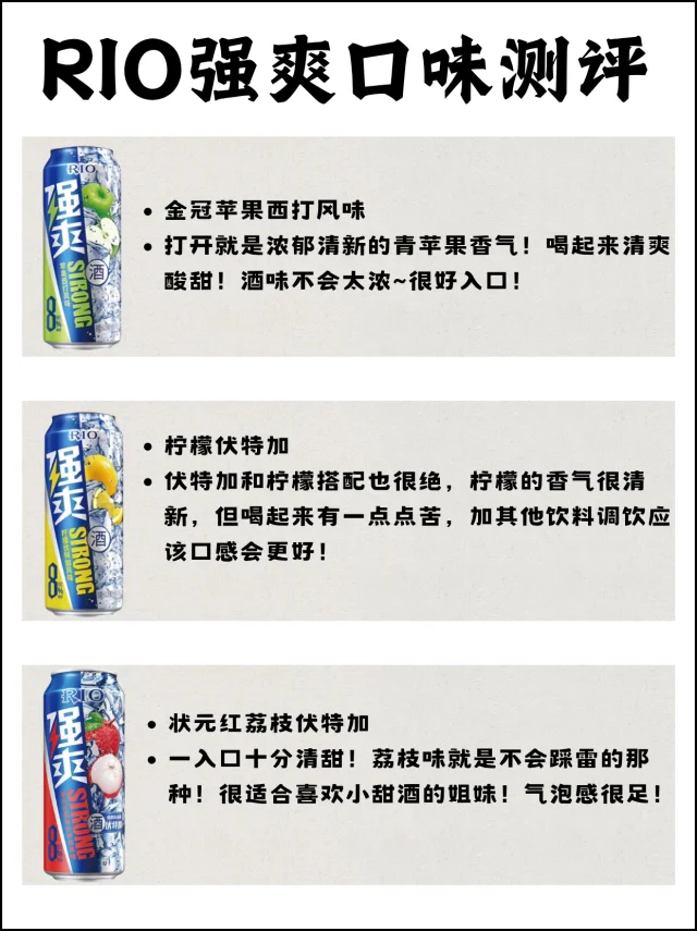 🤩本酒鬼今天给你们带来一期RIO强爽12款热门口味大测评‼️附口感✅每个都好好喝!超适合聚会或者在家小酌,喜欢喝酒的姐妹快来抄作业啦!!