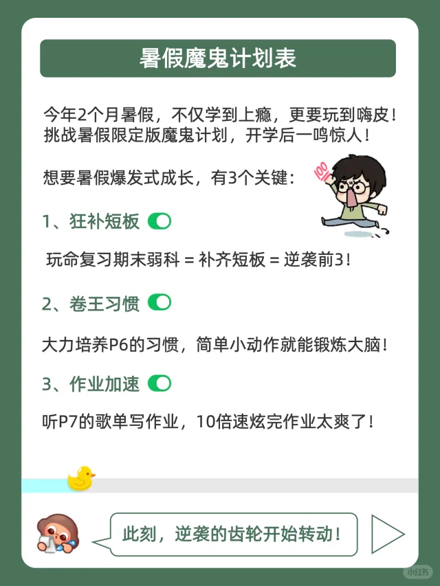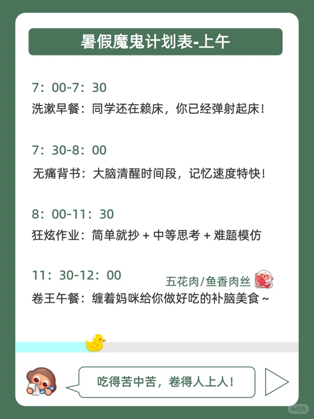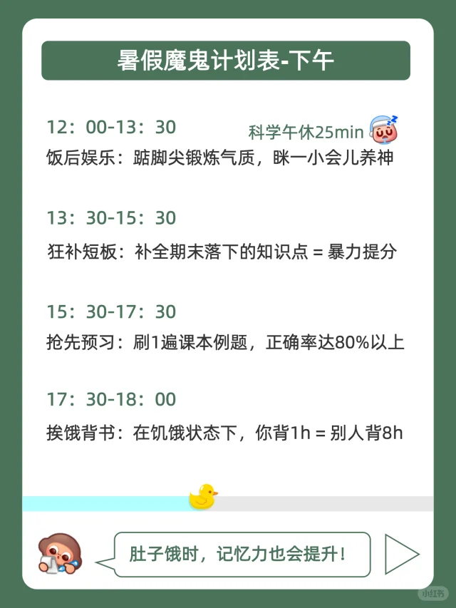 [赞R]暑假躺平摆烂不用怕,鸭鸭带你做卷王❗️ · [哇R]拿下这篇暑假魔鬼计划表,弯道超车就在于此!🚀 . 🐣我是鸭鸭学长,持续分享更多学霸同款学习法,陪宝子们学习开窍,考试开挂!💯