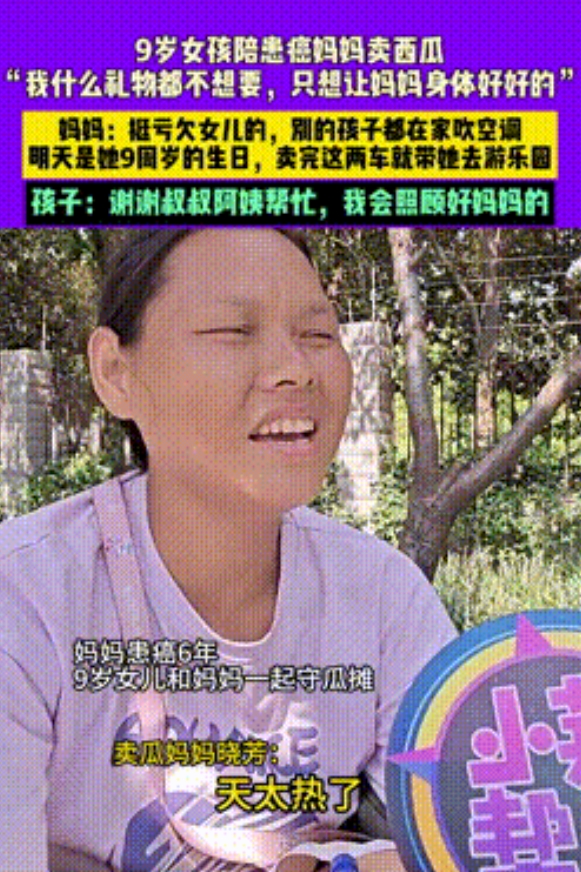 面对这么多的爱心帮助,小女孩或许是觉得,妈妈的下一次手术有希望了,从头到尾都笑得特别甜,有人问她累不累,她擦擦汗开心的表示,根本不累!多卖一个瓜,妈妈就能早一天做手术。