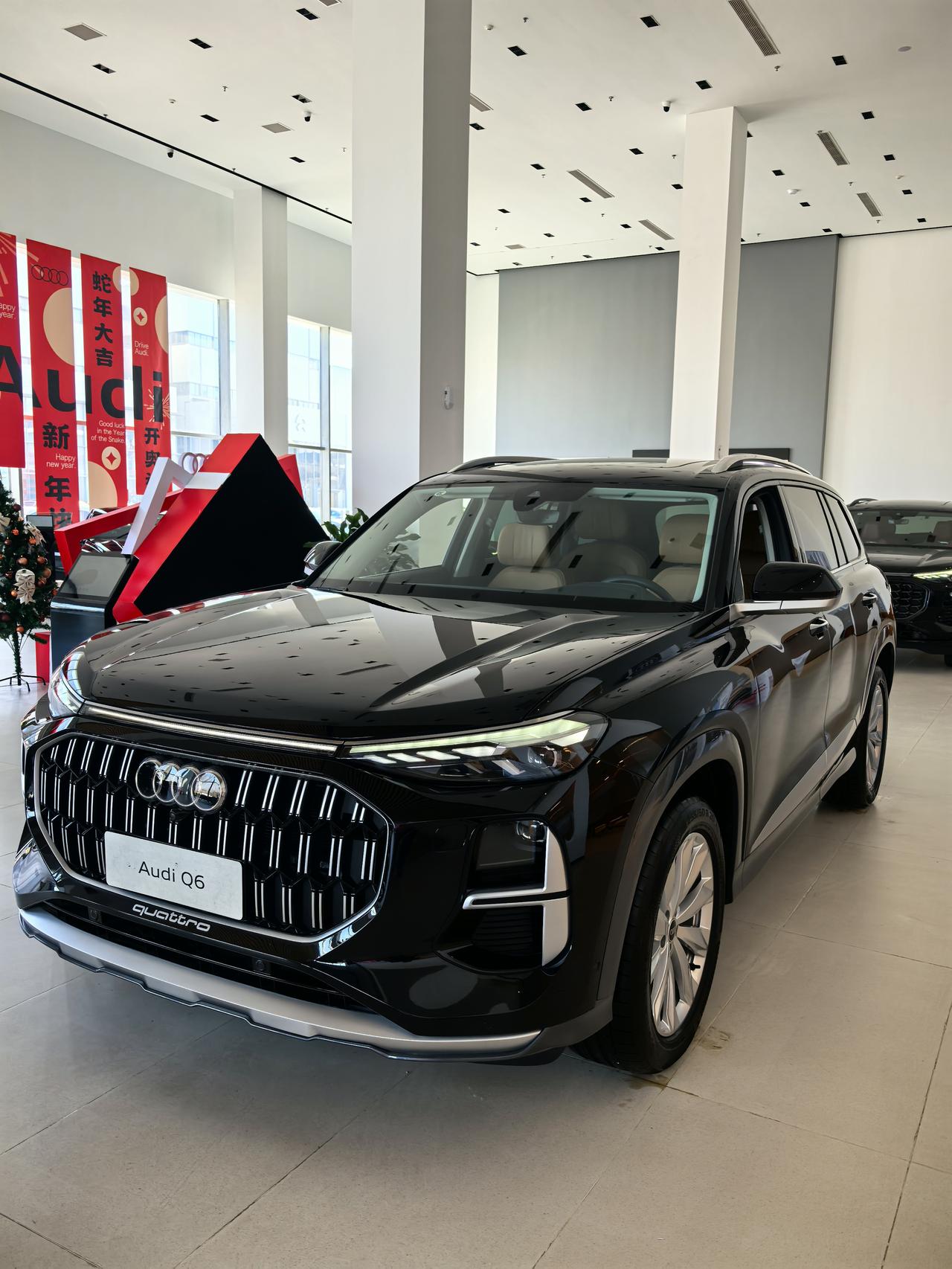 月初周末没事,寻思赶着置换补贴的尾巴去看看车! 本想去提GLC X3或Q5的 X3后排空间太小直接pass了, 试驾了GLC和Q5,C的豪华感没得说,但试驾感觉也没那么惊艳,且没有现车,只有辆库存款。 Q5优惠力度挺大的驾驶感不赖,但是可能因为先试了C再试的5吧,总感觉内饰有点寒酸了。另外满大街都是Q5,有点审美疲劳了,到处撞脸! 表弟六月份提了A7L,路过上汽奥迪店想去看看着,没想到被Q6吸引了,外观大气,内饰豪华,这个内饰的做工和用料真的是上心了。尤其喜欢棕内,整体车的配置来说,也算是真有性价比。 对比了黑武士和齐云羽林,外观上黑武士好看,帅气。但内饰座椅红色黑顶,这个有点不太喜欢。齐云的外观不如黑武士,但内饰棕色沙发的感觉相比更高档点。 综合考虑了下,选择了齐云羽林六座版。接下来就是试驾,虽然车子真是大,但是开起来很轻盈,加速很快,很安静,后排中间豪华沙发真是舒适,感觉出远门的话太享受了。 就是这么大车身,市里接送孩子,真有点不方便! 有点犹豫的是网评这个是什么换壳途昂之类的,想着买了后感觉会不会有点大冤种! 也没必要那么喷吧,但也没必要回避。保时捷曼卡还是同款发动机呢,途锐和卡宴还是同款呢,路虎和福特也用同款着呢。纵置横置又怎样,开着舒服不就得了嘛。 底盘麦佛逊配置的确有点遗憾,不过这个也在豪车队列里也常见。况且视频评测麋鹿测试的成绩比Q7要好。所以用啥又有什么关系呢。本来来讲比老七便宜十多万呢,不能价格低还要同样配置,怎么可能? 安全配置方面貌似这个9气囊也是同级别车里的高配了吧?看了国外的碰撞测试,还比较优良! 总之吧!瑕不掩瑜,喜欢终究是喜欢! 最后咱们有Q6的群么,车友拽我一下,以后有问题多交流请教!