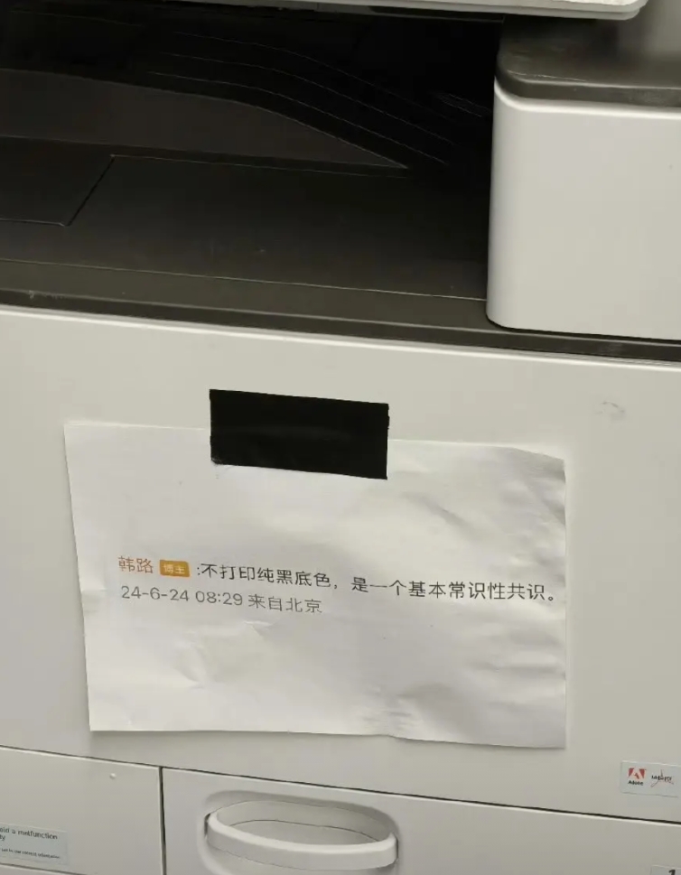 这是韩路的经典名言: 工作中不打印纯黑的底色,是一个基本的常识性的共识!