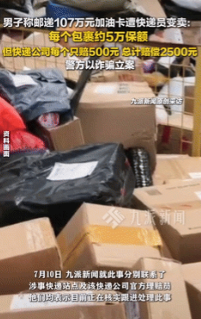 “亏大发了!”江苏一男子给客户邮寄价值107万的加油卡,可东西快送到时客户却不肯结货款,觉得不太对劲,就赶紧召回快递,不料当他打开包裹时,却发现里面的加油卡没了,后面他居然在二手平台上看到了,明明购买有保价服务,但快递公司却只肯赔一点,无奈之下他只好报警!