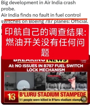 印航空难的初步调查报告出来后,印度网民集体破防,有人表示:凭什么归咎于我们的飞行员,难道不可能是波音飞机的燃油开关质量欠佳,导致突然出故障吗?