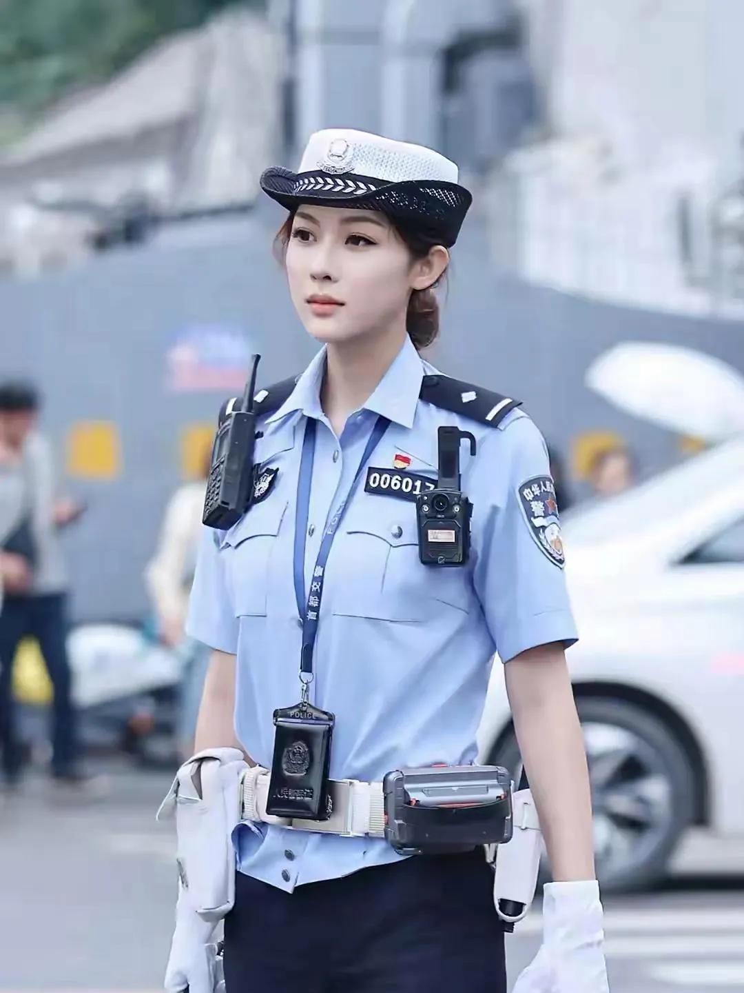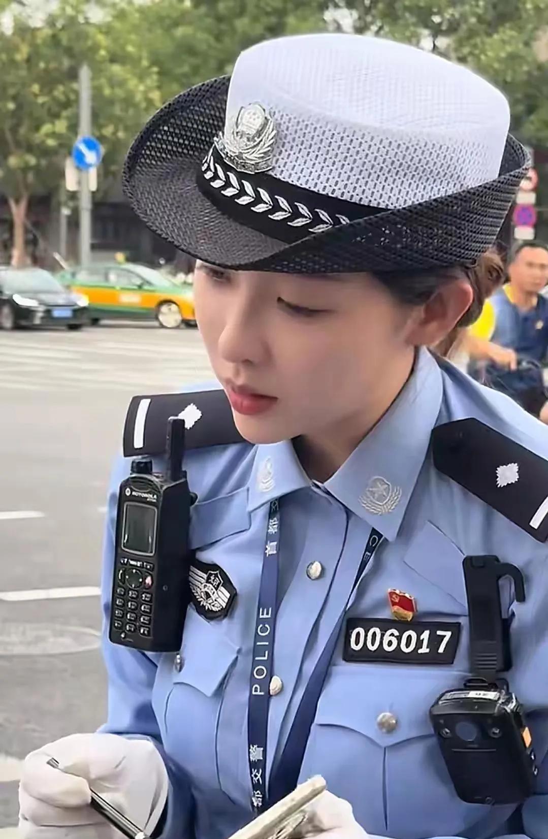烈日炎炎的夏日,认真工作的美女警花,为工作的正常运转和民众的日常生活在努力的工作
