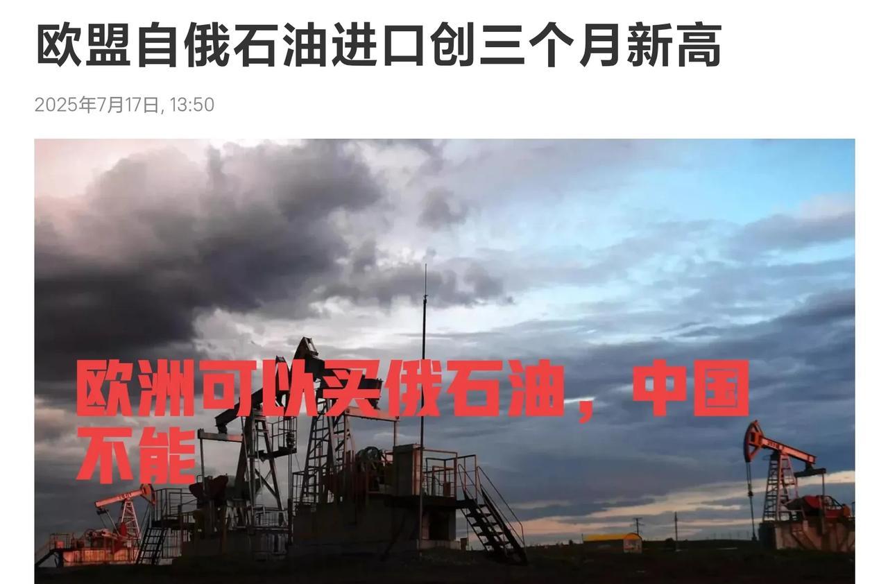 北约秘书长不许中国买俄罗斯石油,否则对中国制裁。看看欧洲为什么要买这么多俄石油?北约同意欧州买,就不同意中国买 ? 美国及北约是什么玩意呢? 5月份欧盟统计局数据报道称: 欧盟5月从俄罗斯石油进口额增至三个月最高水平。 5月采购额增长5.5%,达4.074亿欧元,创下今年2月份以来的最高水平 1:斯洛伐克的采购金额为2.059亿欧元,比4月份下降5.8%;2:匈牙利支付了2.015亿欧元,进口额增长22%。 3:今年1月至5月,欧盟累计从俄罗斯购买了23亿欧元的石油,而去年同期为29亿欧元。 美国及北约秘书长都看看欧盟的石油进口数就明白了,欧洲大张旗鼓的买俄罗斯石油,而美国却要对中国关税制裁? 如果美国敢冒然对中国进行关税制裁,美国的下场是可以预料的? 另外作为北约秘书长管好自家的事,吕特没有资格对中俄的贸易指手划脚,否则被“痛批”的结局!更何况一个喊美国“爸爸”的政客,更没有脸面站在国际上谈话!