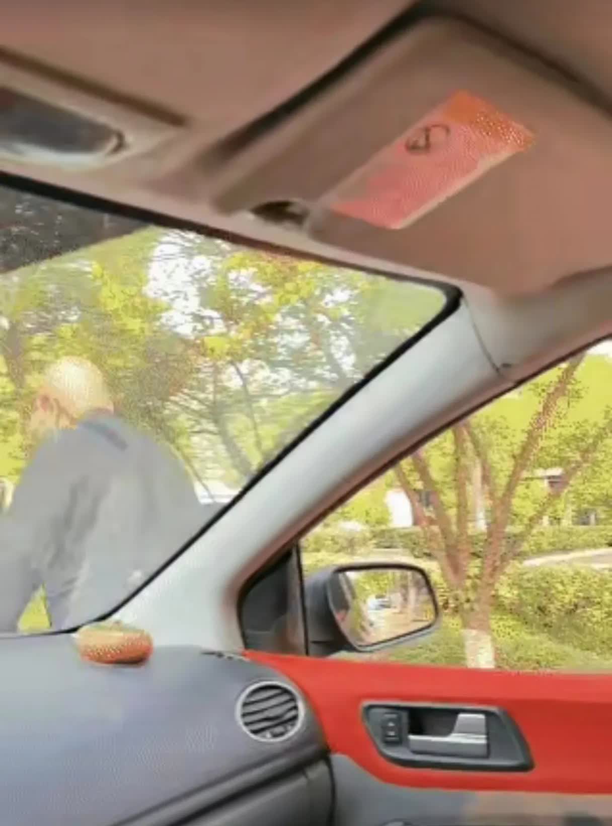 为老不尊,一位80多岁老头走路经过一辆小车看到一名中年女性靠车窗而眠,老头子环顾