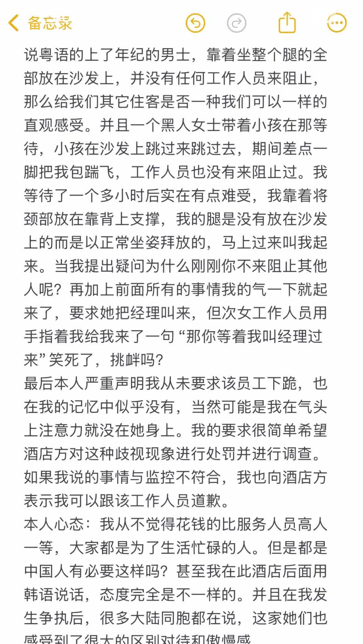 近日一男子在香港一酒店遭到区别对待,怒斥酒店前台:你们对说英语的人低头哈腰的对我们说普通话的人又是一种态度!” 从当事人发出来的后续看,从入住开始,就有诸多问题,酒店方区别对待太严重,看来已经很习惯了。以至于当事人后面用韩语,酒店方的态度又截然不同,看起来是可笑又可气。 也有网友说:那边对说英语的普遍点头哈腰,普通话则会怠慢很多,已经成为港区通病。