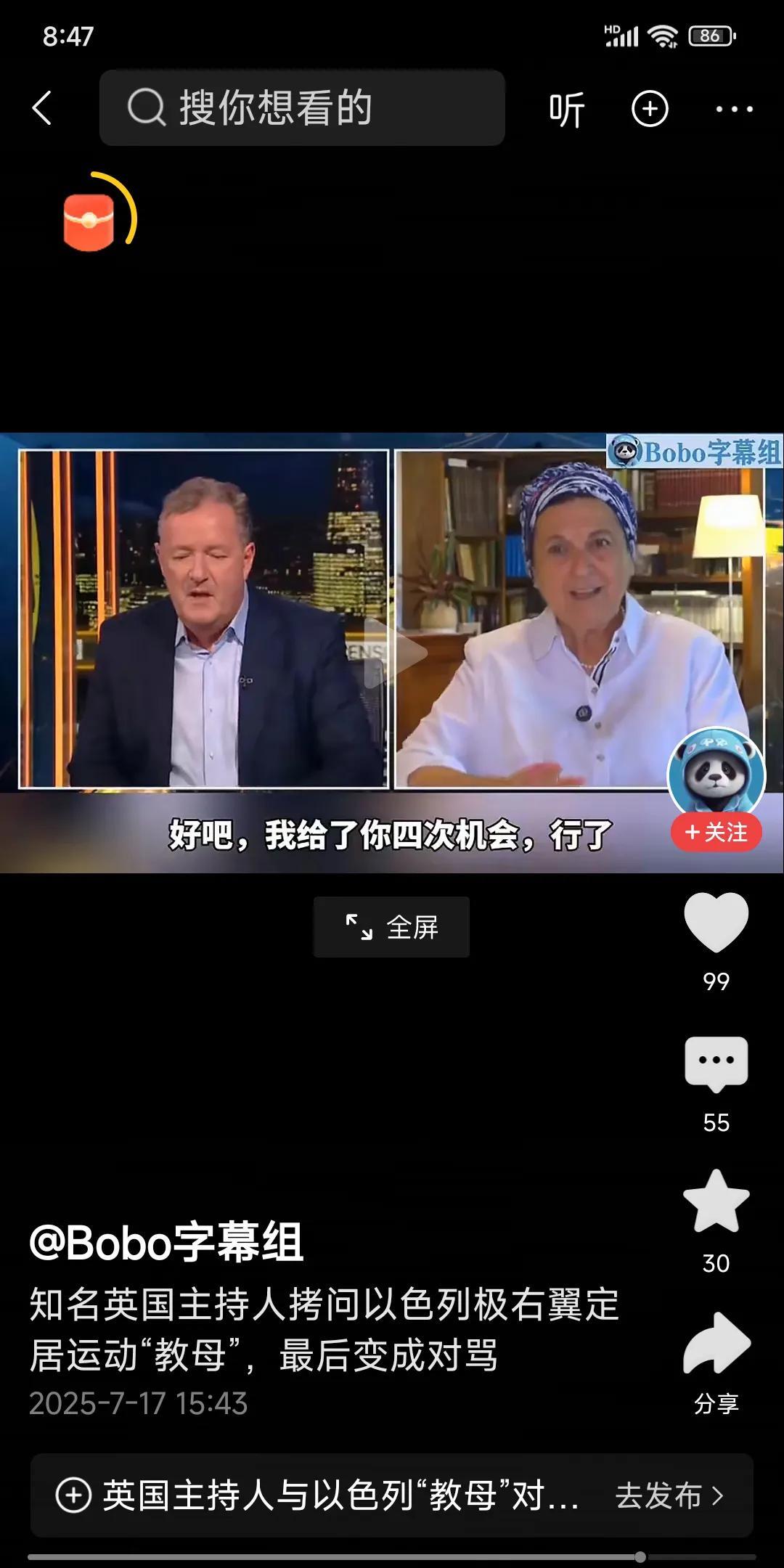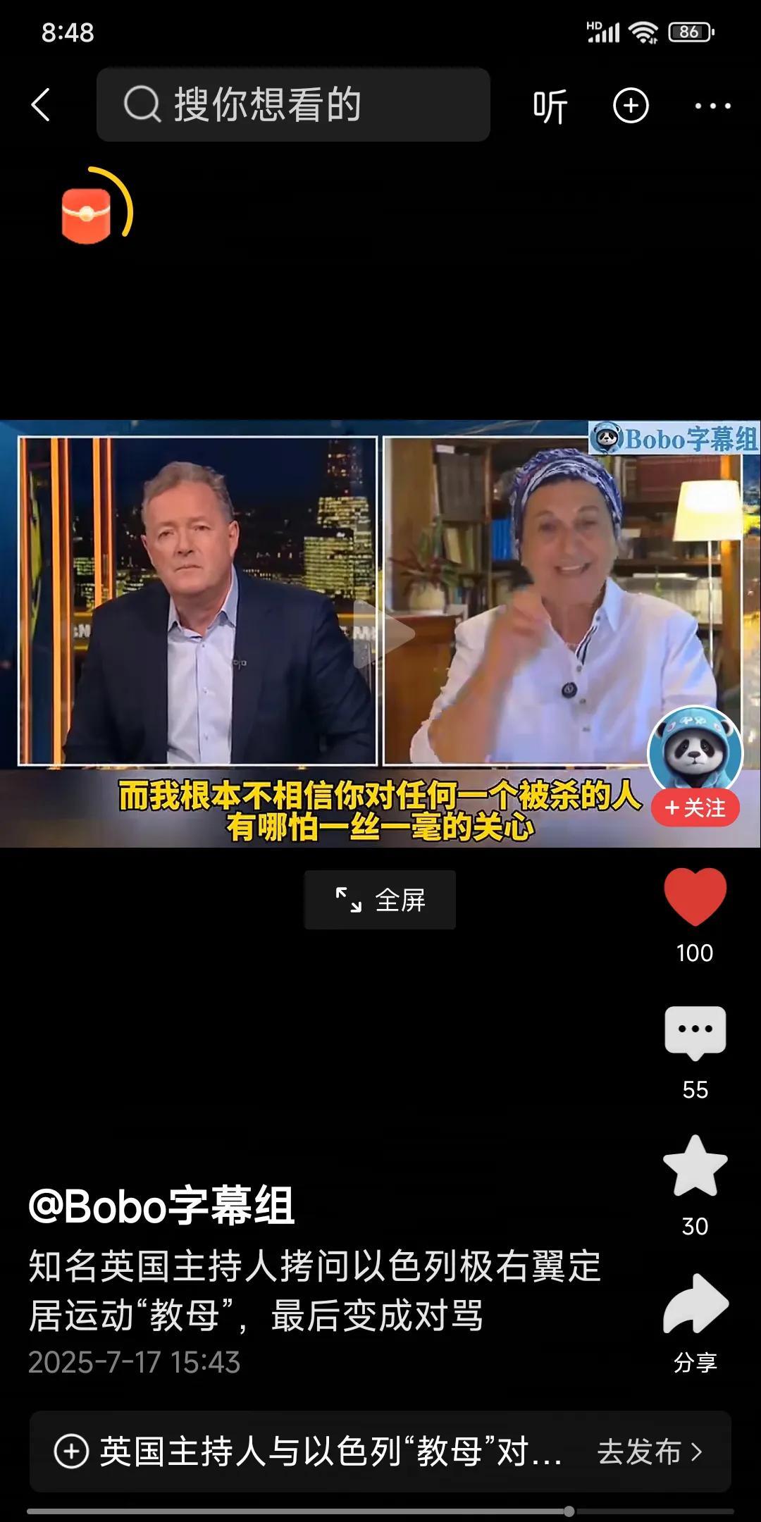 在英国著名主持人的采访面前,这位以色列的标志性人物面对主持人提出任何看待两万巴勒