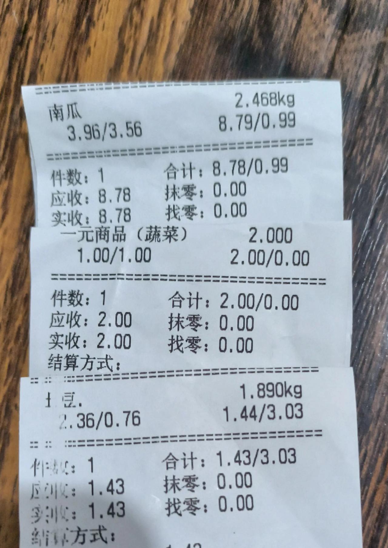 “你尽瞎编,哪来那么便宜的物价啊,我在辽宁五线,我买果蔬怎不便宜呢?[我想静静]” 73年出生,23年退休,退休金2721元,身高168,体重124.9斤的我,总遇见类似评论,要么认为我瞎写博流量,要么就认为我买的东西是有毒的[我想静静] 首先有人有个误区,认为城市越小物价越便宜,其实不是这样的,四线城市肯定比一、二线物价低,房价、工资收入啥的摆着呢,但四线物价通常不会比五线高[偷笑]为啥呢?人口密集,交通便利,商家多,互相竞争,我们这就比隔壁五线物价亲民[偷笑] 同一个城市,不同超市,物价相差不少,即便同一超市不同时间段都有差异,啥时买, 到哪买也是一个学问[偷笑] 我通常早晚习惯溜达,顺路就买家边超市看看,总买东西,果蔬啥价心里有数,遇见便宜的肯定要买[偷笑] 今晚出门溜达,顺路超市买点,长豆、白芸豆最近两天涨价了,但晚上2元一小捆,南瓜价钱比较恒定1.78元一斤,没啥买的就备着,今晚新土豆是亮点,这么大才0.38元一斤,遇见必然出手,今晚一共消费12.21元,加上上午连穷游再买消费的30.6元,今儿一共消费42.81元[偷笑] 不怕退休金低,勤俭持家,能省则省,够花够用,知足常乐[耶]