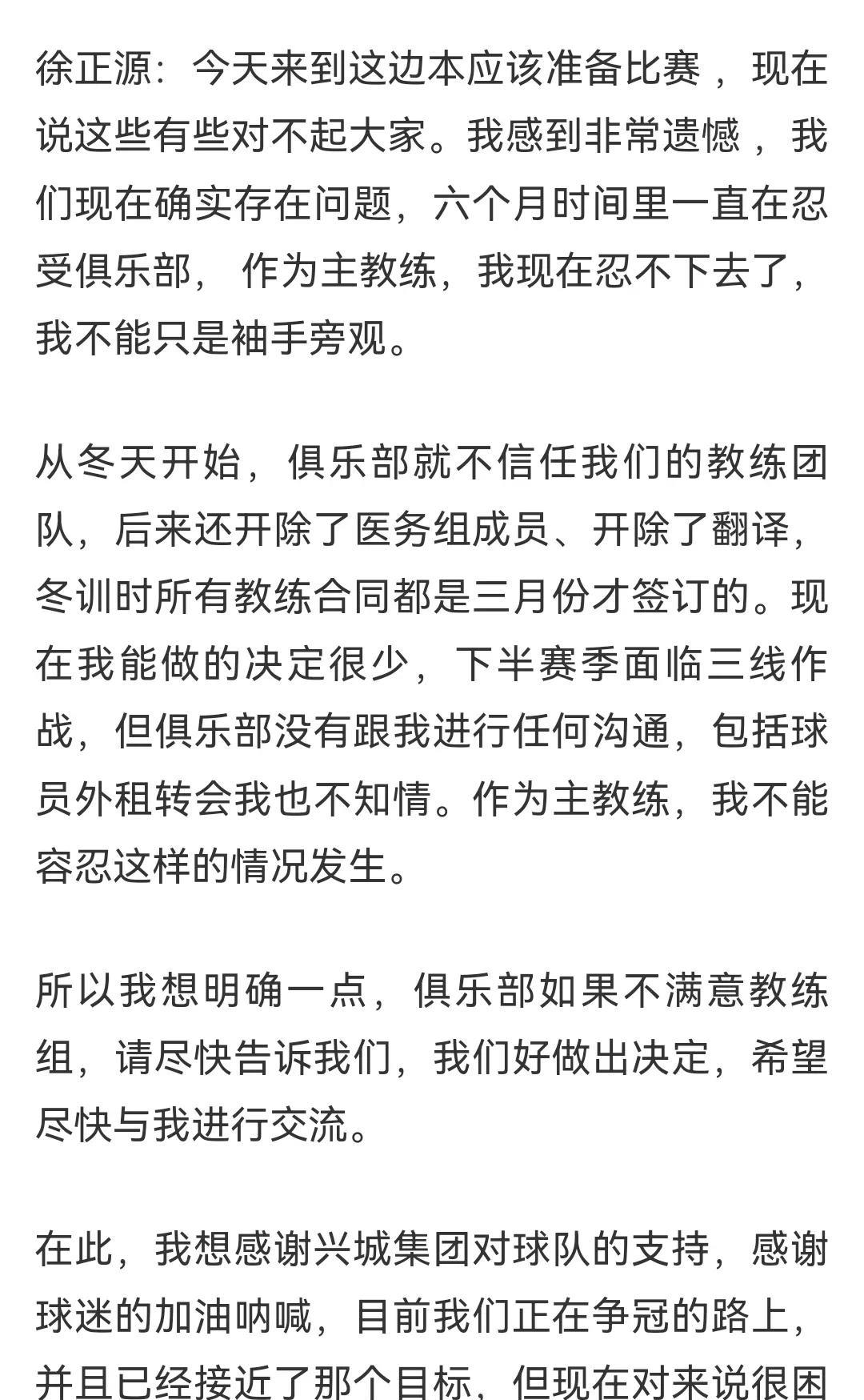 成都蓉城内讧!徐正源公开炮轰俱乐部,记者“吃瓜”! 在出席客场对阵天津荆门虎的比赛发布会上,成都蓉城主教练公开炮轰俱乐部,坦言自己6个月一直忍受俱乐部,对于俱乐部的一些行为非常不满! 目前成都蓉城在中超中拿到34分,与榜首的北京国安有4分差距,还是有很大的夺冠希望,在这个争冠的关键时期,主教练与俱乐部的矛盾公开,从哪方面讲都是最不理想的结果,成都蓉城俱乐部应该也不会妥协,毕竟这是脸面问题! 徐正源作为成都蓉城的功勋主教练,可能也真的感觉自己遭遇了不公,继山东泰山与主教练崔康熙闹出不愉快之后,成都蓉城这次更严重! 记者李璇吃瓜到:与成都蓉城的事件相比,山东泰山的事情就是小儿科了!