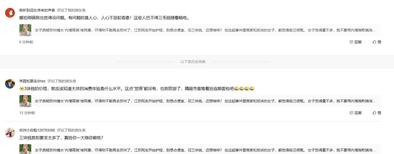 江苏有网友挺护短的,有不少人用替内增高碗的商家洗白,他们说花3块钱,你还想吃啥呢