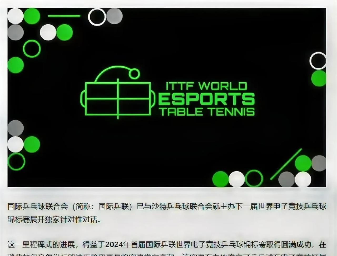 ITTF:沙特拟举办国际乒联电子竞技世界锦标赛 国际乒乓球联合会(简称:国际乒联