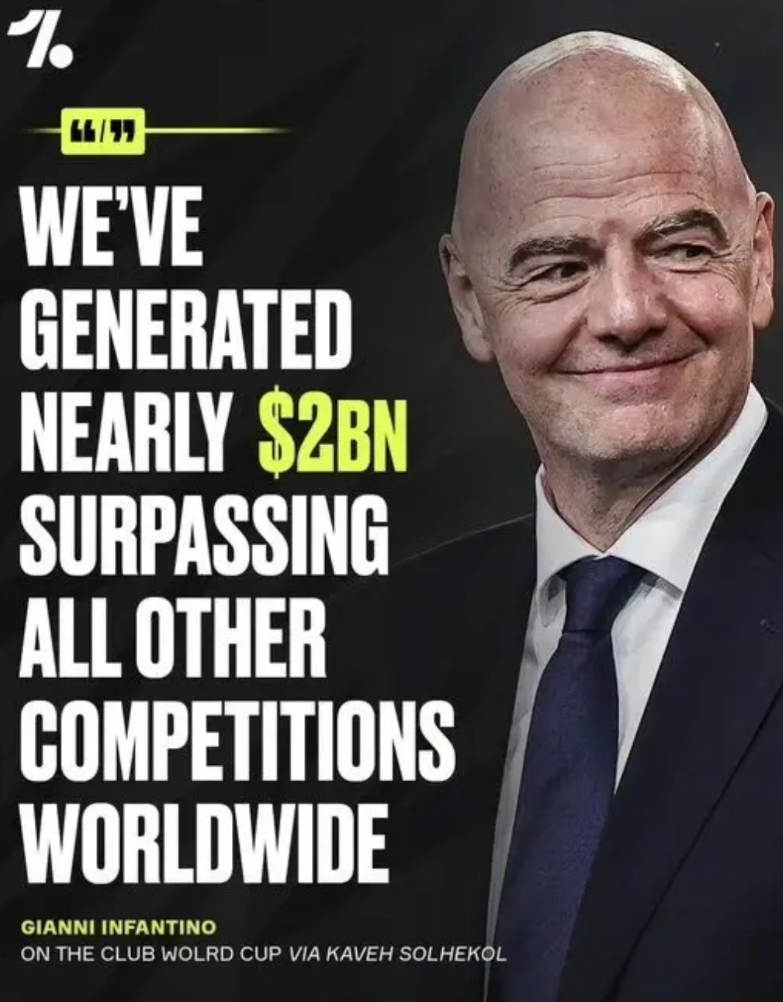 今年的世俱杯狂赚20亿美元 天空体育名记KS消息:国际足联主席因凡蒂诺表示,20
