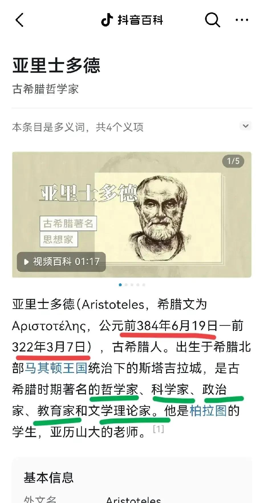亚里士多德生活于公元前384年6月19日一公元前322年3月7日。 感觉仅仅看这一条叙事,就是一眼假!