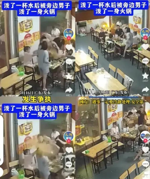 “冲动是魔鬼!”近日,广东某火锅店,一女子与同桌男子发生口角,气不过的她朝男子泼