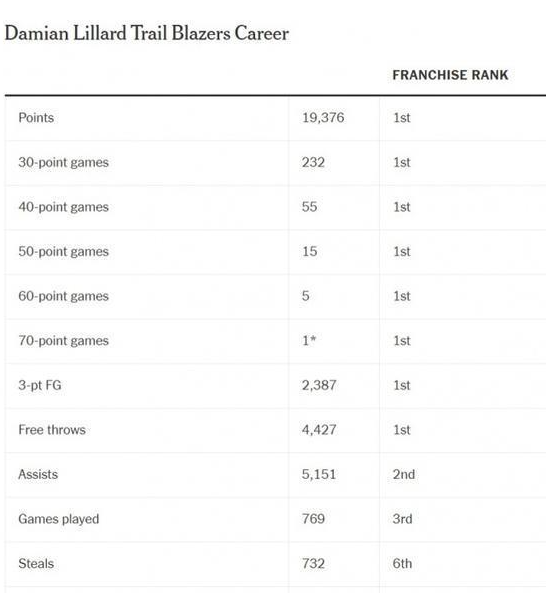 波特兰之王!利拉德是开拓者队史得分王,30+到70+场次均队史第一