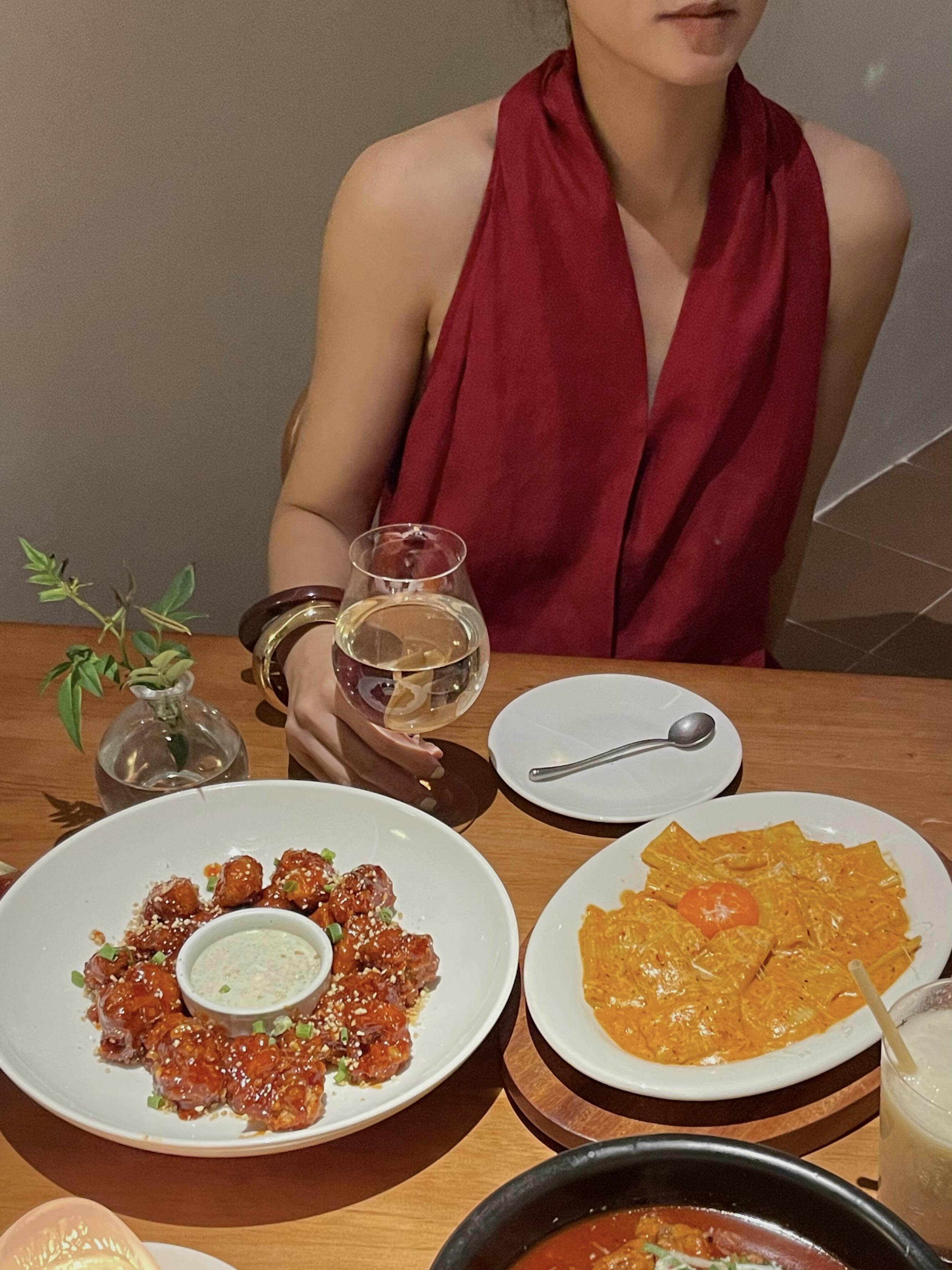无论什么时候红色都是亮眼的存在 姐妹约会日~吃个漂亮饭~