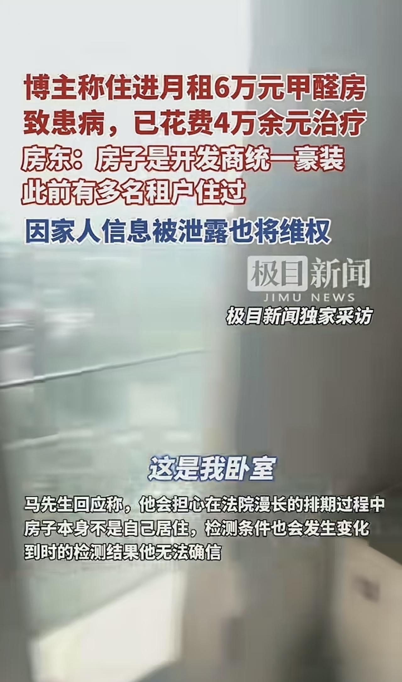 浙江杭州,一男子租了套月租金60000元的房子,可住进去后,他竟然咳嗽过敏,光治病就花了40000多,他一检测,房子甲醛竟然高达3倍,房东不但不退房租押金,还扬言要告男子,说他泄露了家人的信息:我房子是开发商统一豪装,光装修费就400多万,别人住咋没事?分明是你自己家具释放的甲醛,你随便去告。 7月18日,据极目新闻报道,一马姓男子在网上把自己的遭遇公之于众,立马引起轩然大波。 原来,马先生不惜重金,在杭州租了套月租金60000元的房子,房子市值几千万,装修也相当豪华,全屋智能,小区配套更是没的说。 怪不得租金这么贵,赶上普通人一年的收入了,可马先生不差钱,只要住的舒服,他觉得物超所值。 可马先生一月份入住,住进去没多久,就身体不适,咳嗽的厉害,身上还过敏,脖子上全是成片的紫斑,可把马先生吓得不轻,自己这是得了什么病了吗? 马先生去医院就医,光治疗费就花了40000多,还没见好,而且,后期的治疗费,还是个未知数。 马先生怀疑房子里甲醛超标,可他从中介手里租房子时,对方告诉他,这套房子,他不是第一个租客,以前也住过人,不可能有甲醛。 可马先生不放心,自己的健康得自己守护,他还是买了两台空气净化器,24小时连轴转除甲醛。 可不料,5月份,他竟咳嗽还过敏,就诊后,他怀疑房间甲醛严重超标,不是他那两台净化器可以消除的,为了证实自己的怀疑,马先生花钱请了专业检测机构来检测。 当然,马先生入住后,买了很多家具,自己家具也不一定是安全的,所以,马先生让检测机构,在房间设置了2个检测点 这2个检测点,没有马先生自己买的家具,全是房子本身的设施区域,万万没想到,检测结果让马先生倒吸一口凉气,甲醛超过国 家标准近三倍。 这可不是闹着玩的,自己4个月来,竟然一直生活在这样的环境里。 马先生赶紧跟房东程先生提出退租退押金,至于怎么赔偿,他觉得那是之后的事,此时此刻,他必须搬离,否则小命不保。 没想到,程先生既不终止租赁合同,也不退租退押金,竟然还扬言让马先生随便去告他,不到如此,他还会去告马先生。 程先生认为,他这房子是2021年交房,到目前为止已经5年了,如果有甲醛,早应该散尽了。 再说了。在马先生之前,也有好几波租客,为啥他们没事,就马先生自己生病了? 在程先生看来,是因为马先生自己入住时买了家具,甲醛是他家具散发出来的,自己可不背锅。 而且,程先生信誓旦旦的说,他不怕检测,他这套房,装修是开发商统一进行的,光装修费就高达400多万,之所以这么贵,是因为材料都用的环保的。 收房后,程先生又配了80万的家具,家具如此高档,材料当然也没问题,所以,他觉得自己的房子和房间的设施,都经得起考验。 但程先生跟马先生解释了,也给他看了家具的环保证明,可他还是把自己照片、身份等个人信息,甚至2个未成年孩子的信息,都发布在网上,还有虚假信息。这给他造成负面影响不说,还被叫到派出所。 程先生认为,这触碰到了他的底线,当然不可能退房退租,而且,即使马先生不起诉他,他也会把马先生告上法庭,维护自己的合法权益。 还有,他之所以不退租,还有一点,是因为房子还没到期,而房屋租赁合同的主体是原承租方,也就是马先生以前所属的公司。 目前,有关部门介入此事。 根据《室内空气质量标准》,住宅类房屋甲醛浓度应≤0.07mg/m3,而马先生委托的CMA认证检测机构显示,其租赁房屋甲醛浓度超标近3倍卧室0.185mg/m3、客厅0.164mg/m3,远超安全阈值。 医学证据表明,长期暴露于甲醛超标环境中可导致咳嗽、过敏、紫斑等症状,马先生已因此支出医疗费4万余元,符合“危及健康”的实质要求。 房东程先生主张“装修费400余万、材料环保”“前租客未患病”,试图以此否定甲醛超标与自身责任的关联性。 但法律上,装修成本高低与材料环保性并非判断空气质量是否达标的依据,需以客观检测数据为准。 此外,前租客没出现健康问题,不能证明当前房屋符合安全标准,个体对甲醛的耐受度存在差异,且甲醛释放周期长达3-15年,历史检测数据或租客反馈无法替代当前检测结论。 房东认为甲醛可能源于马先生自购家具,但根据《民事诉讼法》第66条,房东需对此主张承担举证责任。 马先生已通过设置无自购家具的检测点排除干扰,检测报告直接指向房屋本身结构或开发商统一装修材料存在污染。 如果房东无法提供反证,如房屋原始装修的环保检测报告,则其抗辩难以成立。 此外,房东以“房屋没到期”为由拒绝退租,违反了《民法典》第563条关于“根本违约导致合同目的无法实现”时承租人可解除合同的规定。 甲醛超标已使房屋丧失居住功能,合同目的无法达成,马先生有权单方解约。 对于马先生这件事,你怎么看? 信源:极目新闻 2025-7-18