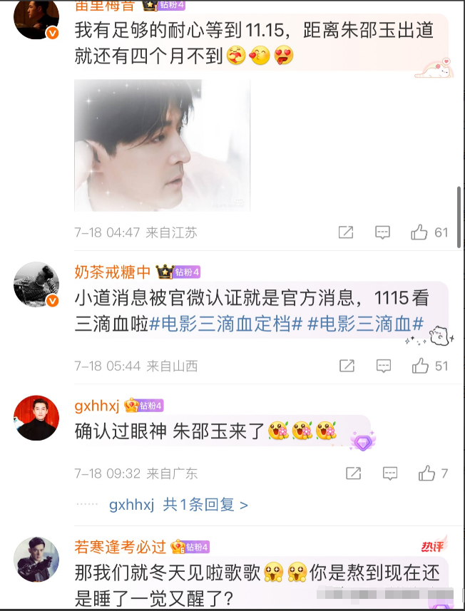 值得胡歌这么大张旗鼓半夜爬起来发文的,是他主演的电影三滴血终于定档了!