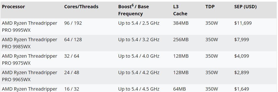【AMD线程撕裂者PRO 9000WX定价公布】7月18日消息,AMD官方宣布,锐龙线程撕裂者PRO 9000WX系列处理器将在7月23日正式推出,该系列处理器专为满足AI和高性能计算需求而设计,提供了高达96个“Zen 5”CPU核心、增强的AVX-512支持、8通道DDR5-6400内存以及最新的PCIe 5.0连接。 AMD还公布了线程撕裂者PRO 9000WX系列的定价,其中旗舰型号9995WX拥有96核心192线程,售价高达11699美元(约合人民币84000元),成为迄今为止最昂贵的线程撕裂者处理器,具体定价可参考配图。 值得注意的是,此次发布的线程撕裂者PRO 9000WX系列主要面向预装系统市场,包括Dell、HP、Lenovo和Supermicro等全球OEM合作伙伴。