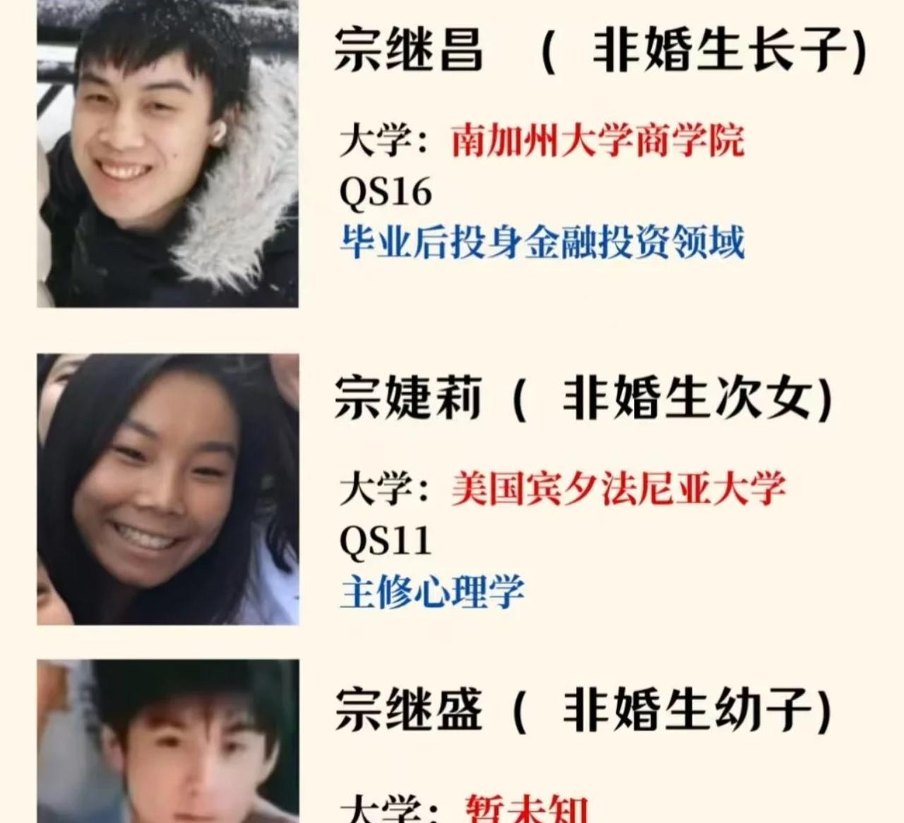 所谓的美籍3子女,哪个像宗庆后?仔细看看,宗馥莉不用做DNA,就知道亲爹是谁!反而觉得3子女与宗庆后弟弟非常相像,真有必要做一下亲子鉴定[静静吃瓜][滑稽笑]