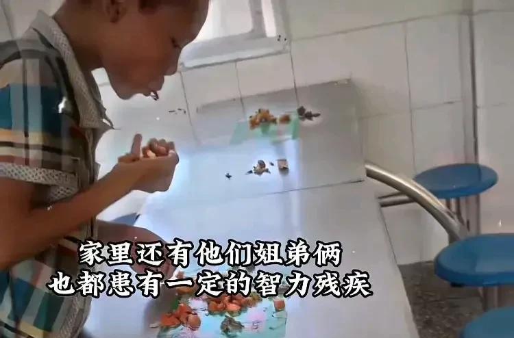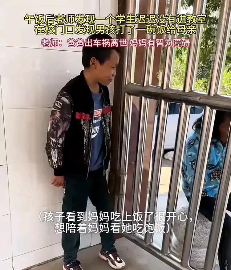 儿食剩骨,正餐奉母,河南南阳小学二年级学生李士搏把学校里自已的免费午餐拿给智障的