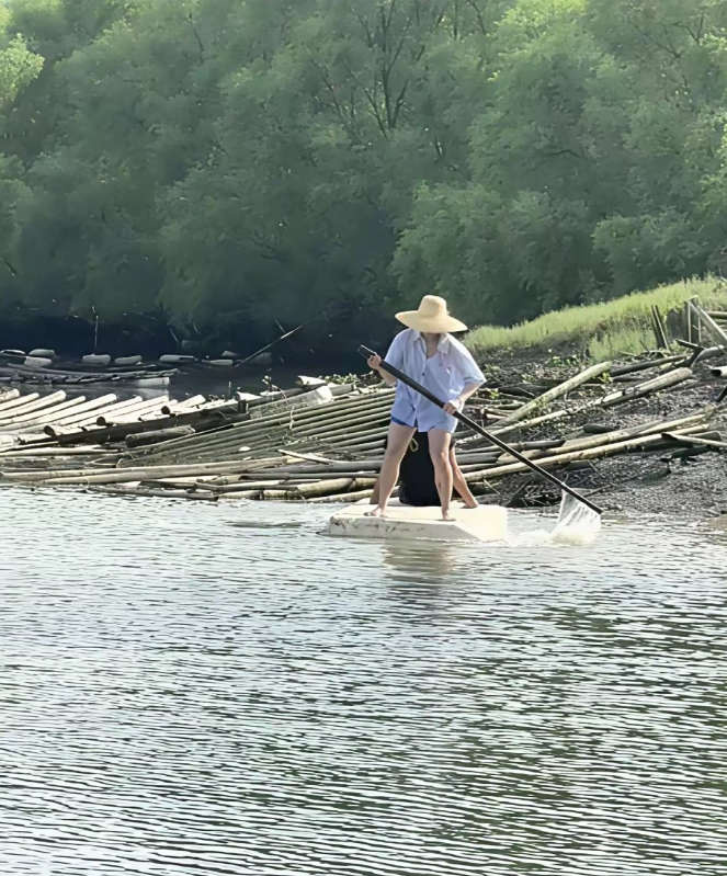 跟我这边住江边农民伯伯一样划泡沫盒过江