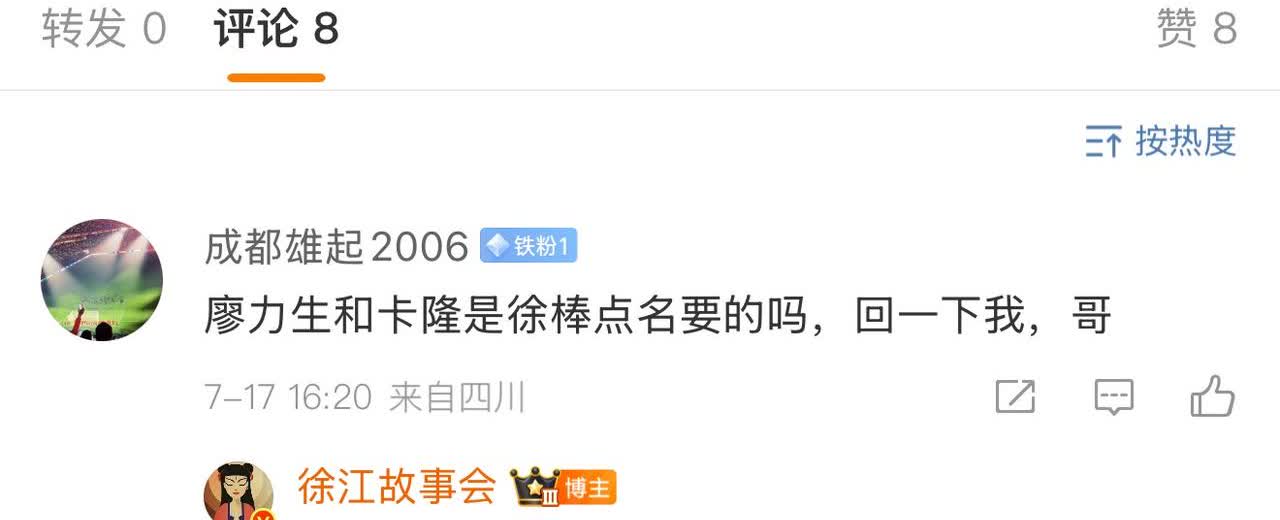 媒体人徐江表示:廖力生当初加盟成都并非首选,徐正源的第一选择是王上源或者徐新,但
