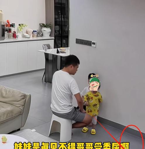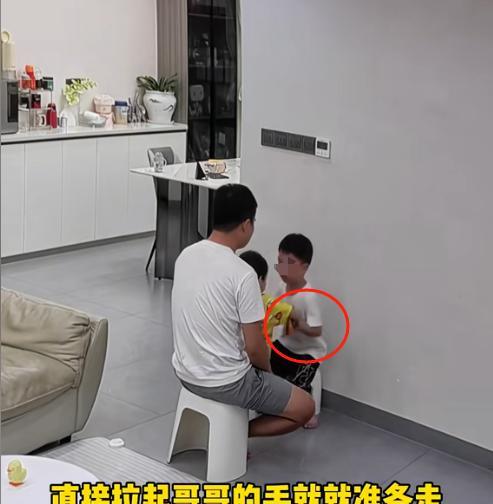 “兄妹情深!”爸爸手持衣架教育6岁哥哥贴墙罚站,委屈地哭着,3岁妹妹走来凶狠狠地