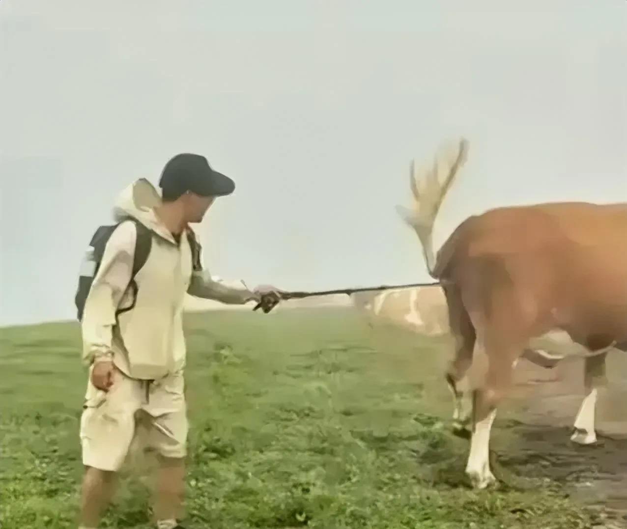 昨天五台山景区上演惊险一幕,某游客徒步时竟拿牛肉干挑逗放养的牛群!结果当场被暴怒