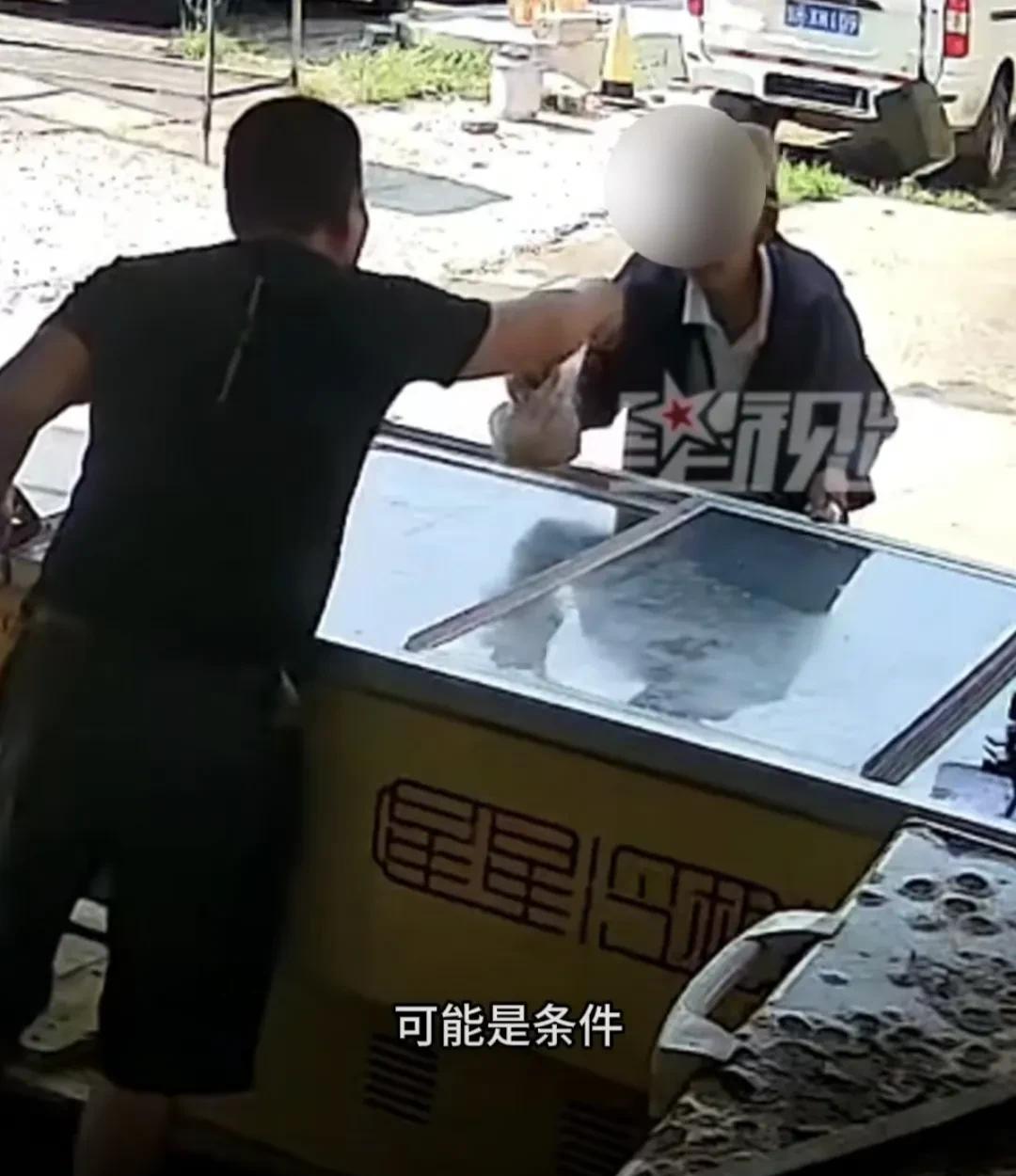 山东荣成,一衣衫简陋的大爷连着2次,在男子摊上偷拿凉粉,男子当场抓住大爷,看他尴