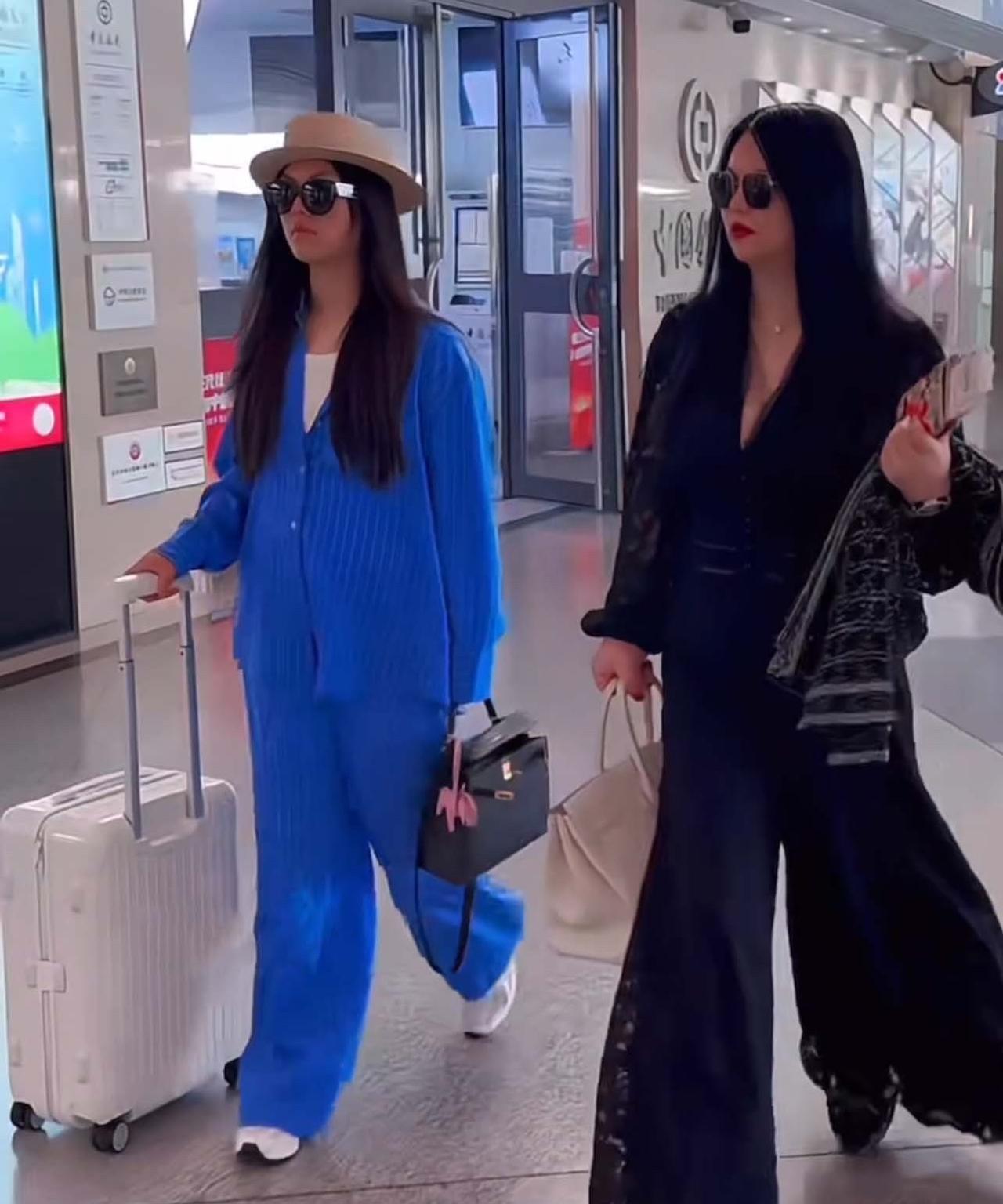 李湘王诗龄这对母女又出现在机场了,这次王诗龄是在妈妈的陪同下出门旅游,王诗龄一身蓝色条纹套装轻盈飘逸,和妈妈的黑色蕾丝装很相似,都非常惬意,慵懒风走起。王诗龄换了风格之后,和妈妈越来越像了,出门旅行心情好。
