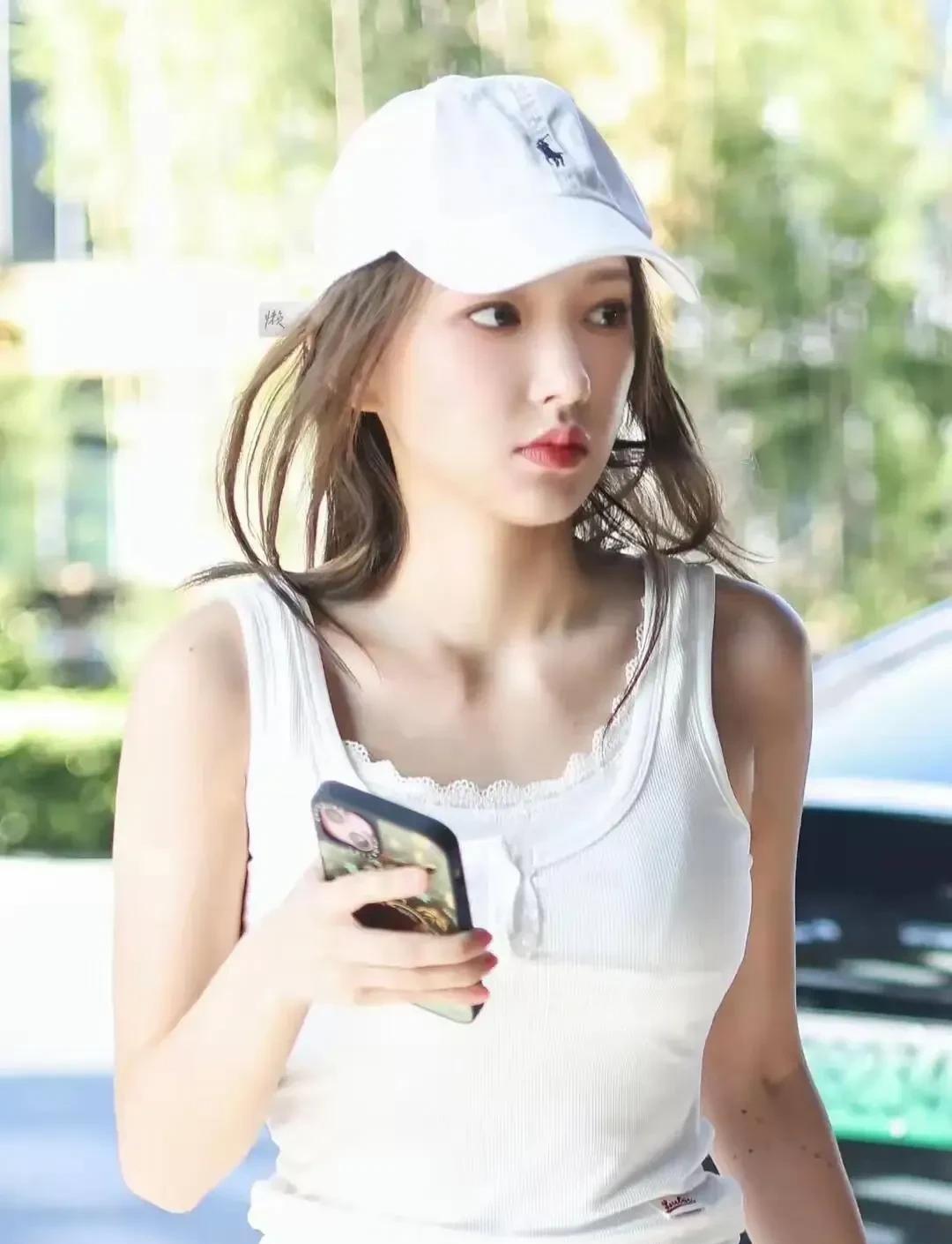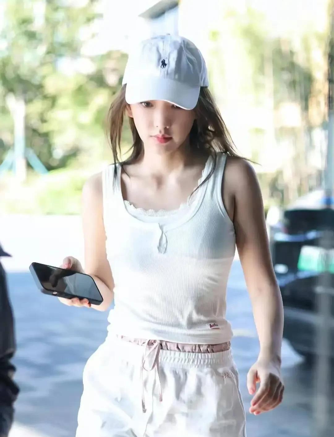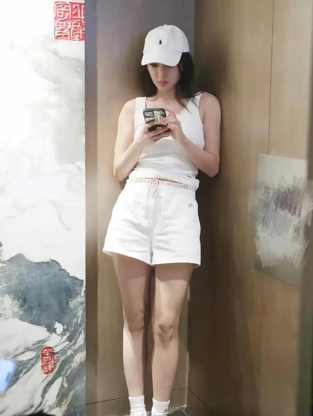 程潇这身材绝了!白背心配短裤,大长腿逆天,皮肤嫩得能掐出水,低头看手机都藏不住性