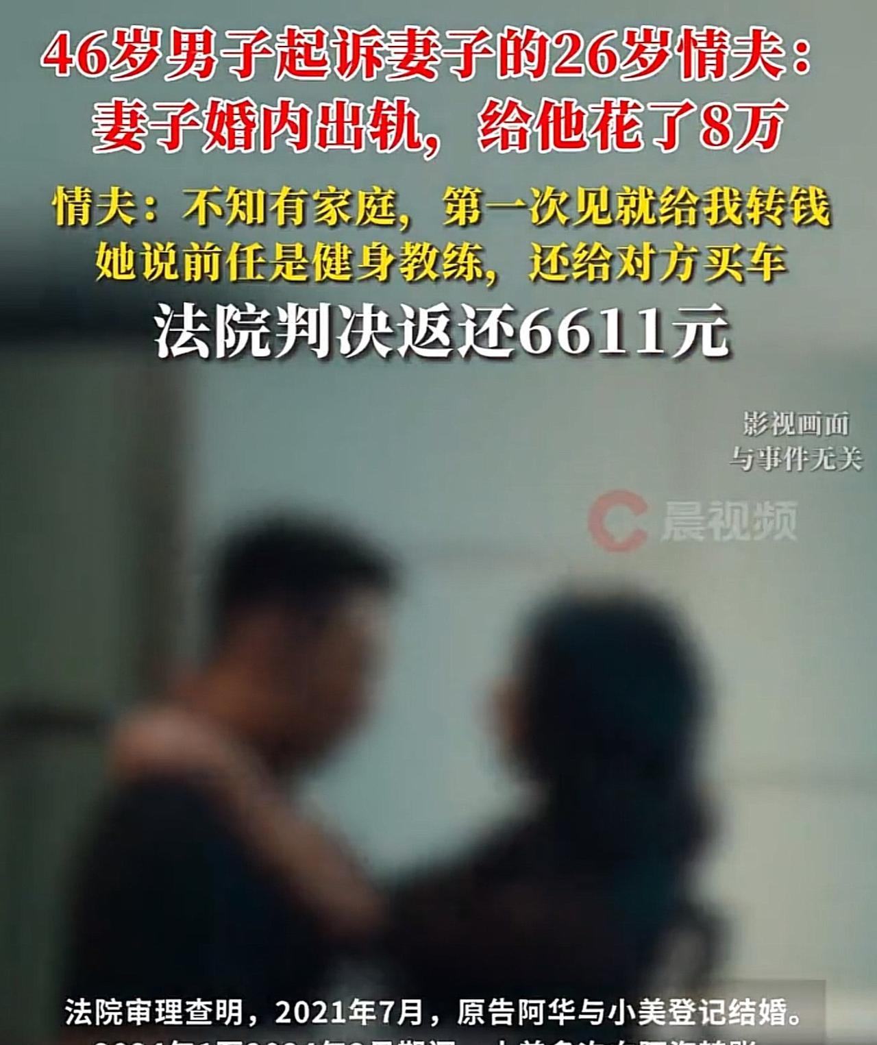 据潇湘晨报·晨视频,7月17日报道:46岁的郑没想到妻子给自己戴了绿帽子,还把自己辛苦赚的血汗钱给别人花了,气愤不已,直接将对方告上了法庭,可判决结果,让他欲哭无泪! 2021年,郑某和张某结为夫妻,俩人你侬我侬,感情蜜里调油。 街坊邻居都说,这俩人看着就登对,准能白头偕老。 可谁也没料到,这份好感情在2024年出了岔子。 那年,张某遇上了26岁的小伙王某,打这以后,张某的心就被王某勾走了。 王某年轻、帅气又幽默,张某对王某一见倾心,两人第一次见面的时候,张某就表现得特别主动。 当时一群人在外面玩,结账的时候张某二话不说,直接给王某转了钱,让他帮忙买单。 后来,更是时不时就给王某转点钱,花自己老公的钱给别的男人,一点儿不心疼。 张某虽然年纪不小了,但是风韵犹存,自是有几分魅力的,再加上花钱大方,王某对她也有几分好感。 女追男隔成纱,张某毕竟是过来人,拿捏男人还是有一套的。 在和王某相处中,常常和王某吐露心声,说自己前阵子刚跟一个健身教练刘某分了手,被伤得特别深。 “为了他,我花了好多教练费,还给她买了辆车,一下子就出去5万呢!”张某边说边抹眼泪,那委屈的样子,任谁看了都得心软。 王某也是个实在人,一听这话,同情心立马泛滥,觉得张某不容易了,赶紧安慰张某。 就这样两颗心不知不觉的就更加靠近了,直接捅破了窗户纸,从朋友变成了“恋人”。 在张某眼里,王某可比自己家那位强多了。所以,她对王某出手特别大方。 出去吃饭、唱歌、逛街,甭管啥开销,张某都抢着付钱。 王某偶尔开个直播,张某更是眼睛都不眨,直播间里的火箭、跑车刷得那叫一个欢,大额礼物跟不要钱似的往上送。 平时没事儿,还总给王某发红包、转钱。 其实王某这人吧,还算有点底线。 相处了一段时间后,他无意间知道了张某已经结婚,当时王某就坐不住了,觉得这事儿不地道,立马跟张某提了分手。 可张某哪肯啊,哭着闹着说自己是真心喜欢王某,离不开他,死活不同意分手。就这么拉拉扯扯,俩人的关系又维持了一阵子。 但老话说得好,纸终究包不住火。 张某这些反常的举动,郑某早就觉得不对劲了。 妻子天天不着家,手机不离手,对着屏幕傻笑,花钱也大手大脚,问她钱花哪儿了,就支支吾吾说不清楚。 直到有一天,郑某无意间看到了张某手机里的聊天记录和转账凭证,那一条条暧昧的消息,一笔笔转给王某的钱,加起来居然有8万多! 郑某当时气得浑身发抖,差点没背过气去,自己辛辛苦苦挣的钱,竟然被老婆给别的男人花了。 换谁谁能忍?郑某压着一肚子火,直接把王某告上了法庭,要求他返还这8万块钱。 理由很简单:这钱是夫妻共同财产,张某没经过他同意就随便赠与别人,这侵犯了他的权利。 《民法典》夫妻在婚姻关系存续期间取得的财产,一般属于夫妻共同财产,夫妻对共同财产享有平等的处理权。 一方非因日常生活需要处分夫妻共同财产时,应与另一方协商一致,任何一方无权单独处分。 张某背着郑某将8万元赠与王某,显然不属于日常生活需要的范畴。 而且,《最高人民法院关于适用〈中华人民共和国民法典〉婚姻家庭编的解释(二) 》明确规定,一方为重婚、与他人同居以及其他违反夫妻忠实义务等目的,将夫妻共同财产赠与他人的行为无效。 夫妻另一方诉请返还的,人民法院应予支持。张某和王某发展成情人关系,张某的赠与行为违背了夫妻间的忠实义务,也违背公序良俗 。 然而让人意外的是,法院最终判决王某仅返还6611元。这是为啥呢? 原来,法院在审理时会仔细甄别每一笔款项的性质。 这8万元里,可能有一部分是张某和王某共同消费的,比如一起吃饭、唱歌、旅游等开销,这些共同消费的部分不能简单认定为赠与,自然不用返还;还有可能部分转账被认定为是张某自愿赠与王某的日常小额馈赠,这部分也可能不被支持返还;另外,如果王某能证明有些钱他已经用于张某身上,或者以其他形式返还给张某,那这部分也会被扣除。 这起案件引起了广泛关注和讨论,有人觉得张先生太可怜,老婆出轨,钱还没要回来多少;也有人理解法院判决。毕竟要依据证据和法律条文严格判定。 但不管怎样,这都给大家提了个醒,婚姻中要遵守忠诚义务,处理夫妻共同财产时更要谨慎,别因为一时冲动,惹上不必要的麻烦 。 信源-潇湘晨报·晨视频-2025-7-17。