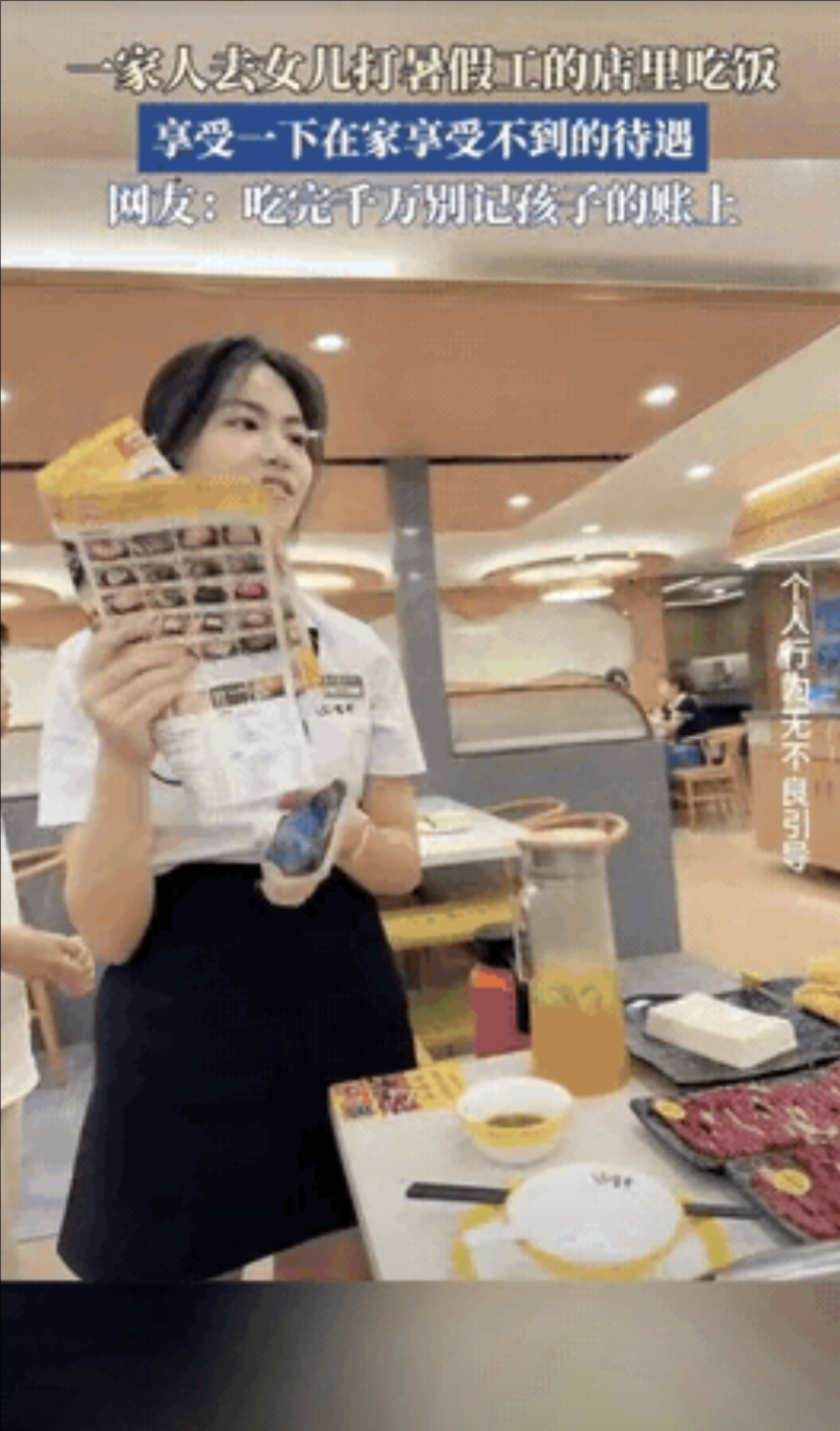 “笑不活了!”近日,广东,一对父母专程“杀”到女儿暑假打工的餐厅,就为吃顿饭!只见平日里在家碗都懒得收的宝贝闺女,此刻身着工作服,点菜、倒水、招呼客人,动作麻利得像变了个人。爸妈坐在桌旁,瞅着闺女忙碌的身影,笑得合不拢嘴:“在家都是我们伺候她,今天可算享回闺女福了!”