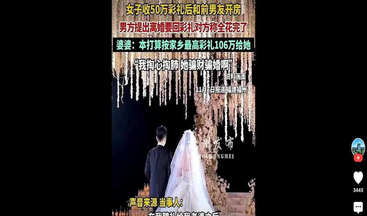 福建福州,一男子和女友结婚,男子母亲很喜欢女友,答应给106万的彩礼,先给50万