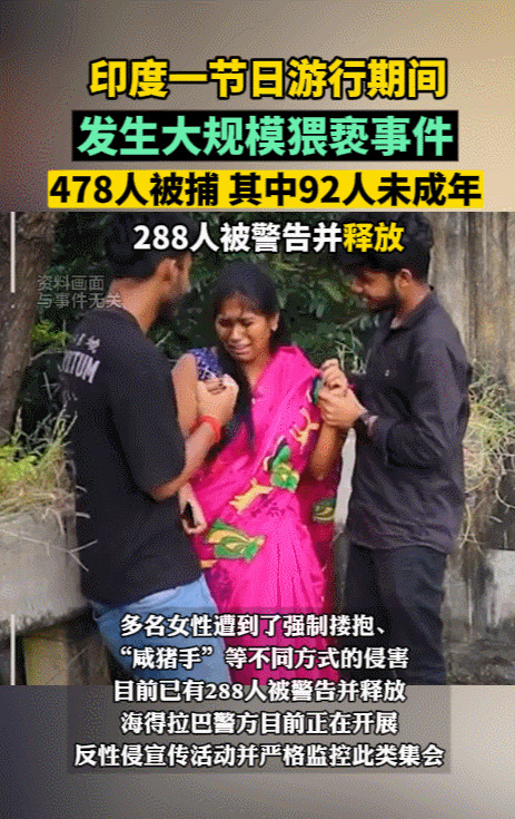 说白了,就是印度那边节日游行,结果一堆人趁乱摸女生,被警察抓了好多。警察现在也在想办法,希望以后别再有这种事儿发生。