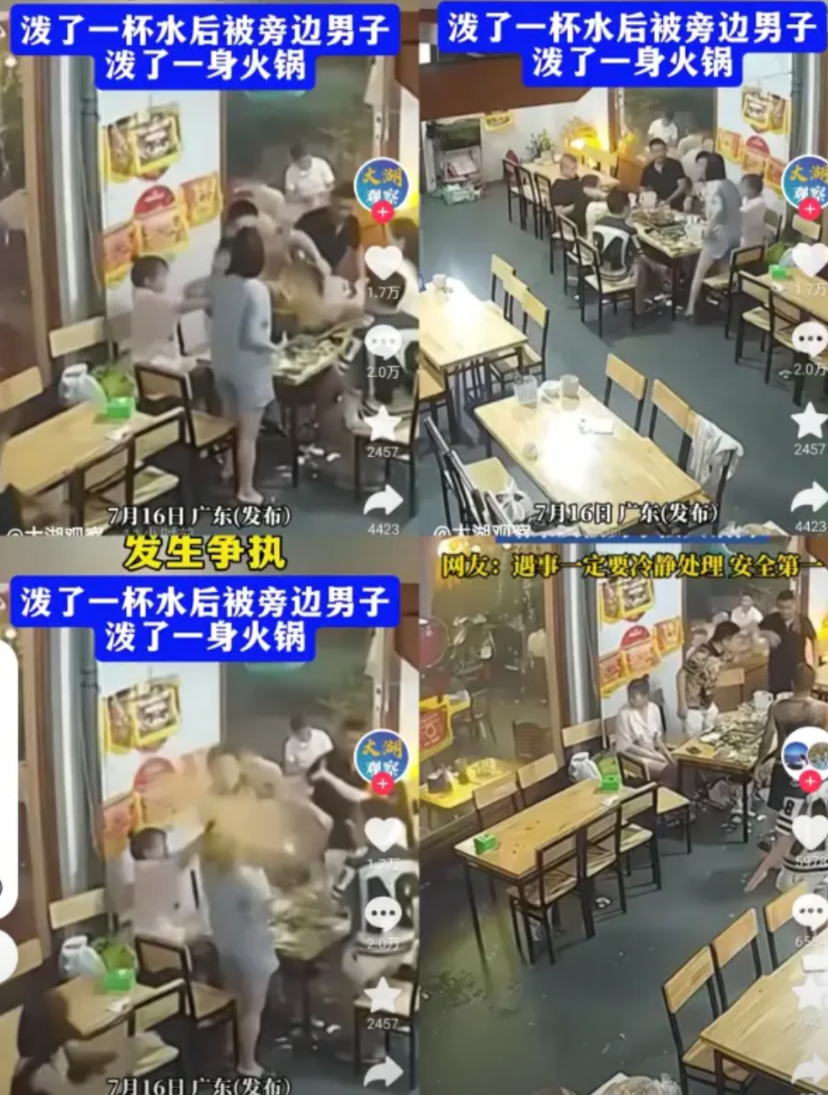视频里七人聚餐时,灰衣女子突然暴起泼开水,男子竟反手泼出滚烫火锅红油,这场“互泼大战”让网友直呼:成年人的体面,碎得比玻璃还快!