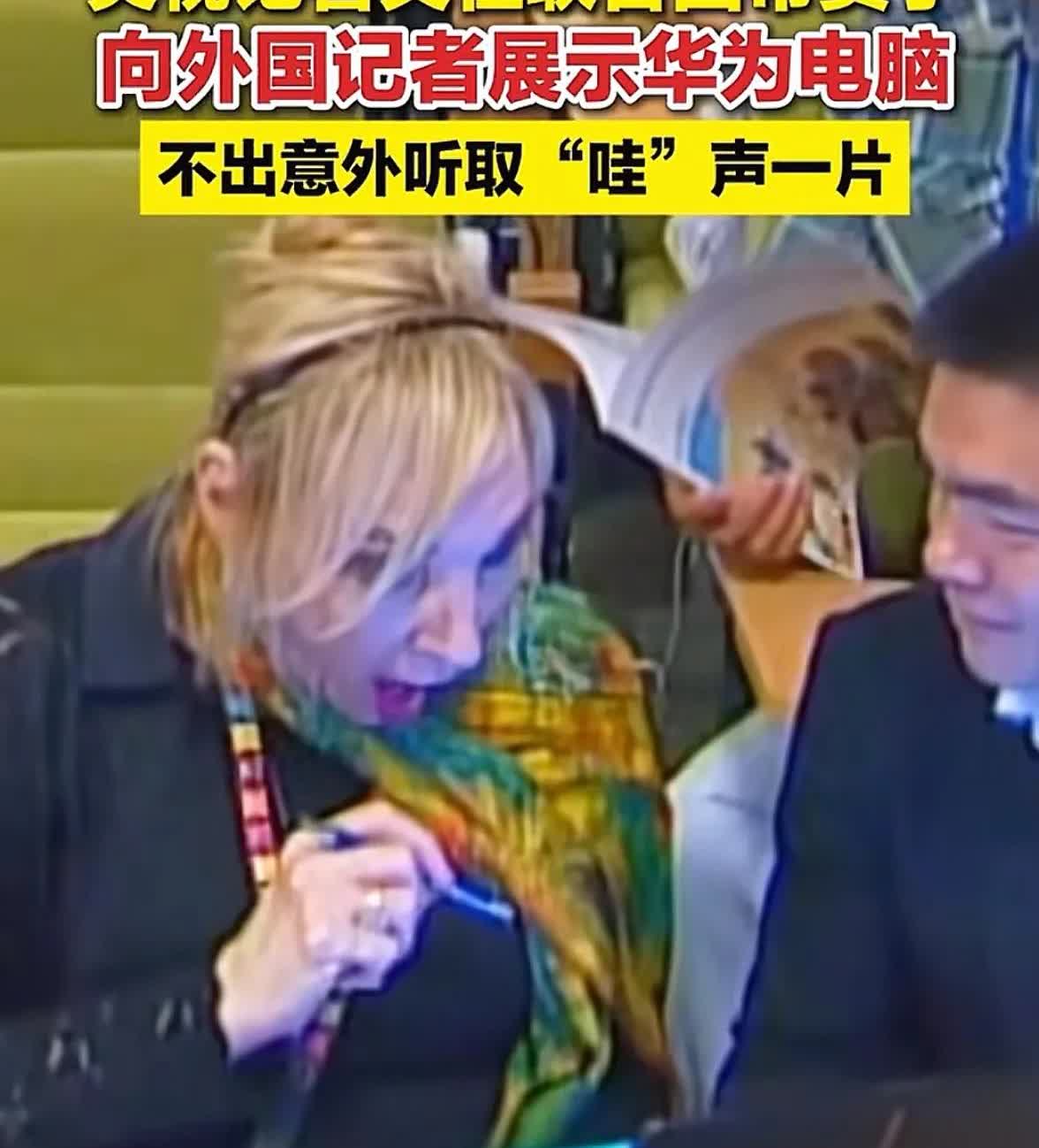 华为和三星在国外知名度差这么多吗?某记者在国际机构的媒体会上拿出华为折叠电脑,惊