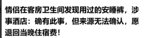 河北邢台,一男子带女友入住酒店,竟然在卫生间洗手台下的暗格,发现一条女人使用过的安睡裤,还和毛巾放在了一起,可把男子恶心坏了,酒店给他换了房间,他也不答应,要求酒店退350元房费。酒店:我们在你换后的房间又发现同款安睡裤,这东西是你们的,你们心里没数吗?男子:这是污蔑,退钱加道歉!